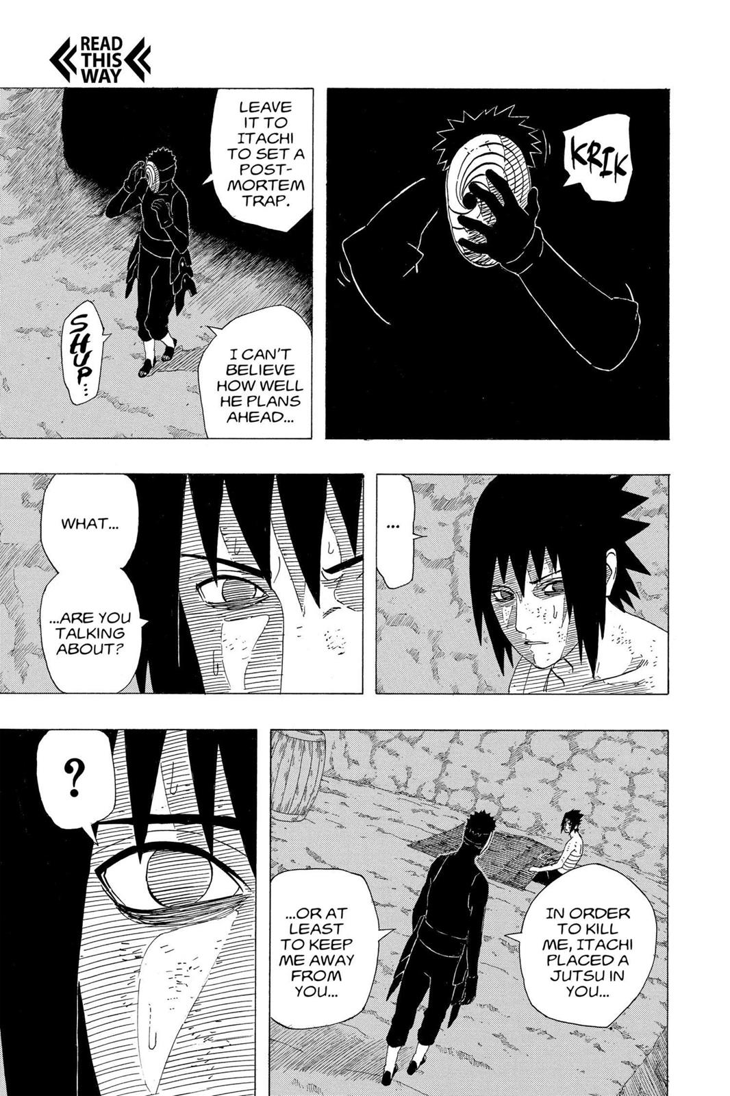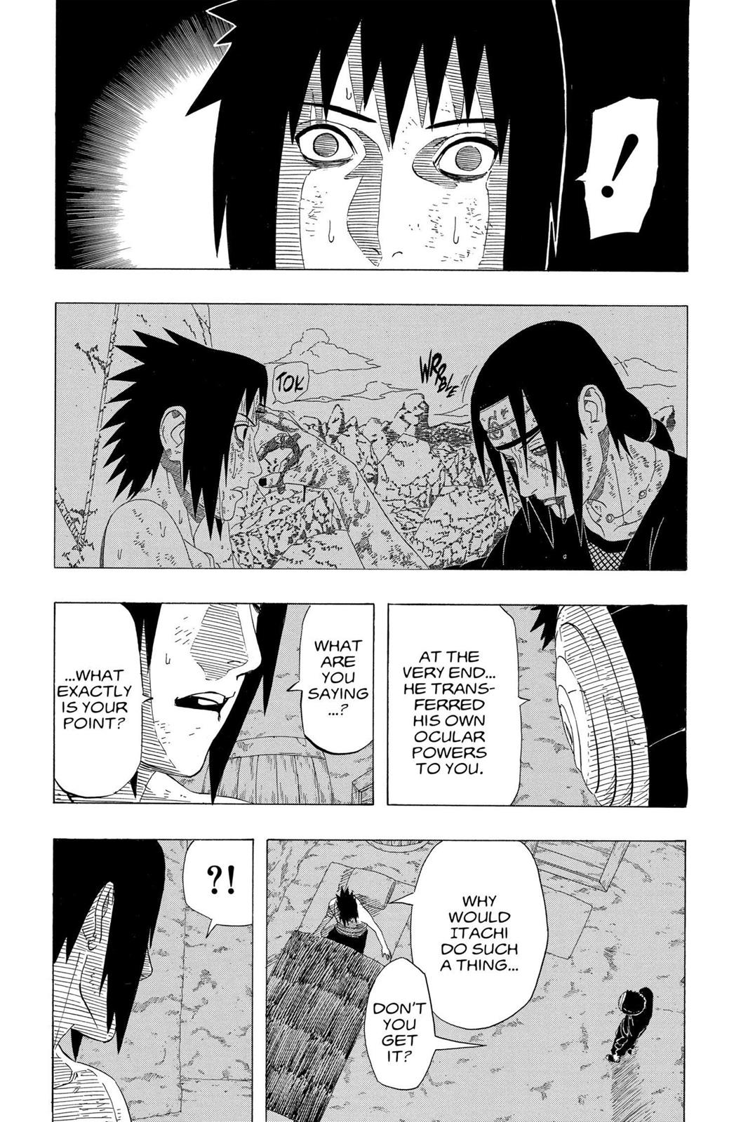 The secret of the Uchiha just vanishes, no explanation for the reader or Sasuke at all