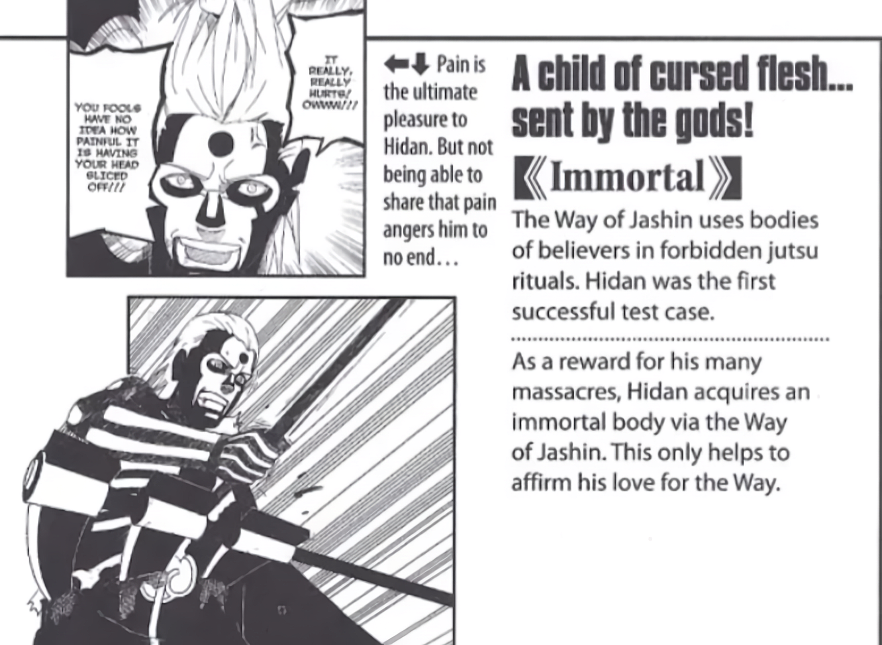 I think Kishi had the rough idea for Izanagi already by here. He obviously gets burnt and writhes in pain but then comes back unscathed