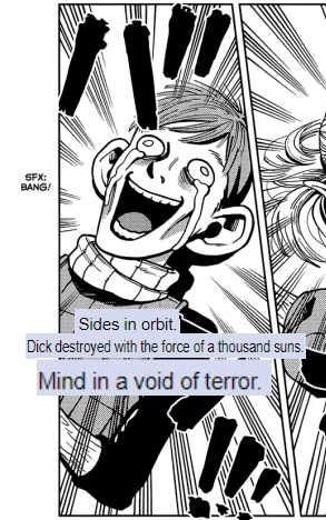 >>285642553yeah not sure about the official translation desu, I must say that it is wildly different from unofficial translations. I'm guessing because it's rated 13+ they think that the kids are familiar with that kind of lingo, but then again what western teenagers even know about this manga. I'm still gonna buy them but it is fascinating to see the difference between official and unofficial translations.