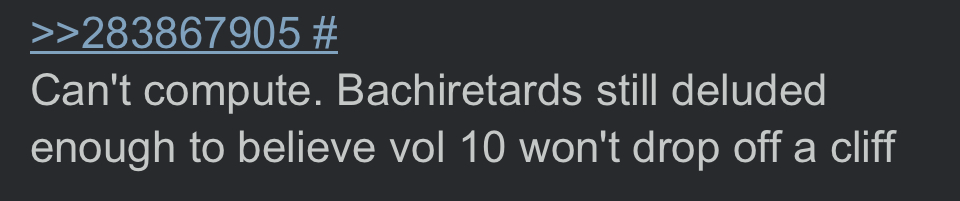 >>285650849it's probably this batch but they're giving it time to end elusam anons how many chapters to finish a volume are left?