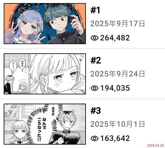 >>2856505111 ・ Ichi the Witch ・ 61st Hunt: Vitals 2 ・ One Piece ・ Chapter 1167: IDA'S SONS 3 ・ Someone Hertz ・ #12: Sense of Connection 4 ・ SAKAMOTO DAYS ・ DAYS 239 TINDERBOX 5 ・ WITCH WATCH ・ 227 The Insider 6 ・ Kagurabachi ・ Chapter 103: Healing 7 ・ Blue Box ・ #221: I'll See You When You're Done 8 ・ Shinobi Undercover ・ CHAPTER 60: SQUAD NO. 7 9 ・ Hima-Ten! ・ No. 69 Kan-Ten! 10 ・ Akane-banashi ・ STORY 185: COLDNESS 11 ・ Nue's Exorcist ・ CHAPTER 124: POWER IDENTIFIED 12 ・ The Elusive Samurai ・ CHAPTER 229: CHILDREN 1353 13 ・ Hero Girl and Demon Lord Call It Quits ・ #4 The Hero Vs. Subspace 14 ・ Me & Roboco ・ Chapter 260: Roboco & You Could Say 15 ・ The Mage Next Door ・ CHAPTER 5: OSOEGAWA VS. THE SHOPPING DISTRICT 16 ・ Gonron Egg ・ Chapter 6: Forest of People