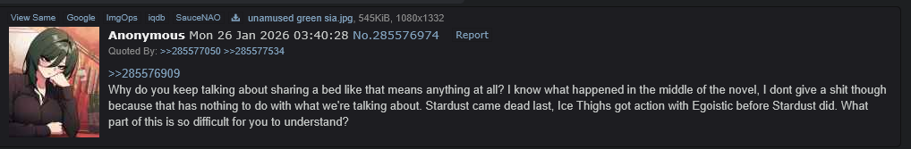 >>285634389I did a quick skim and the post and reply chain shows that you two were arguing about Stardust's relationship timeline with Egostic. That anon is literally correct. What were you hoping to prove with this?