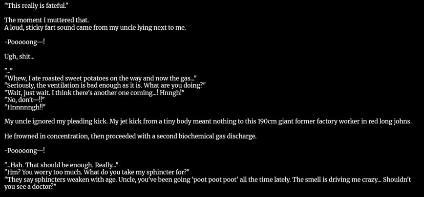 >>285648988As you mentioned, that is just typical JP humor. I can understand your frustration, it is prevalent in all JP mediums, but might be more common in isekai because it has such a low bar of entry. My isekai comedy recommendation that has two jokes is https://asmotoon.com/series/62f0db09a3e/which consist of muscles and slave labor.