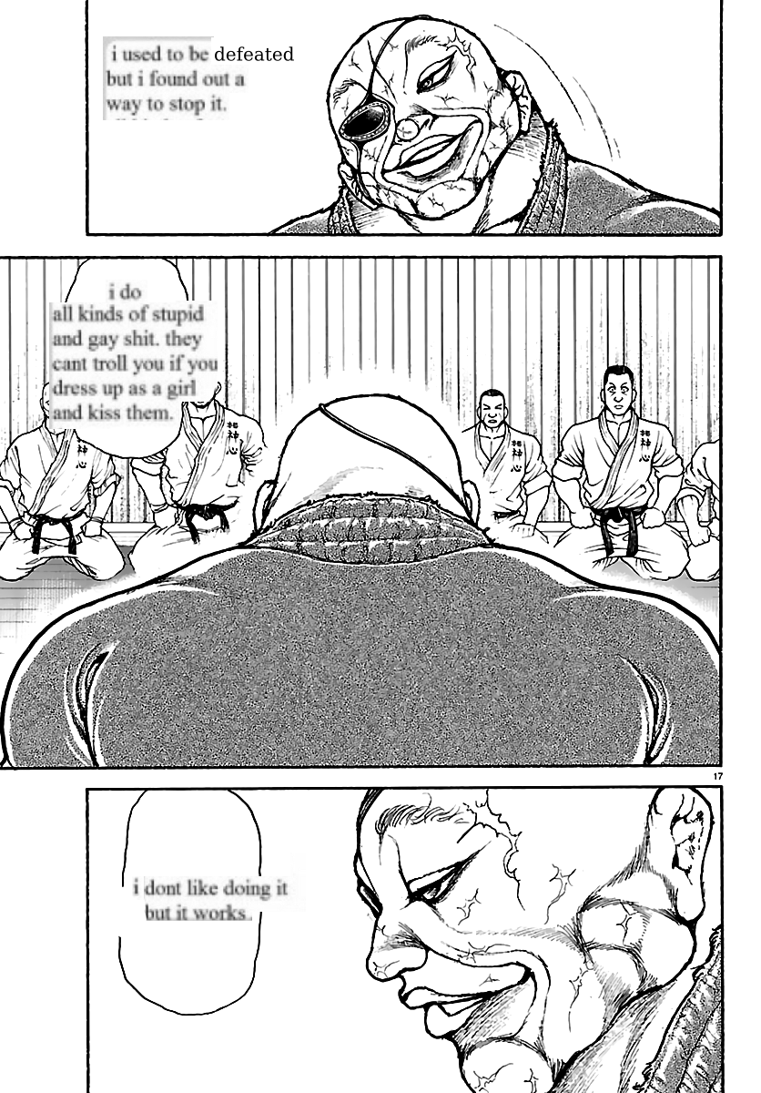 >>285687504>he always bites his opponents since his introduction, so why is that now treated like a new incredible tecnique?.Jack was just biting people, now he's attempting to combo it in between his punches and kicks. When he's not doing that he's getting half his face torn off, humiliated by Motobe or getting "lil bro'd" by Hanayama and with Hanayama he wasn't entirely taking him seriously so Hanayama bullied him>he just gets another surgery to make himself taller Yujiro explains the advantages of getting taller and why it's right up Jacks alley to do so>jack feels weaker now and yet the story tells me he is stronger now He's far stronger but less steeled than he thinks he is. It's why he can low-diff Pickle but freak out when Kosho nibbles on his ear or when Hanayama rips his skin off. He can perform a mean german-suplex but he can't take getting his own skin and muscle torn off despite doing the same thing by biting people