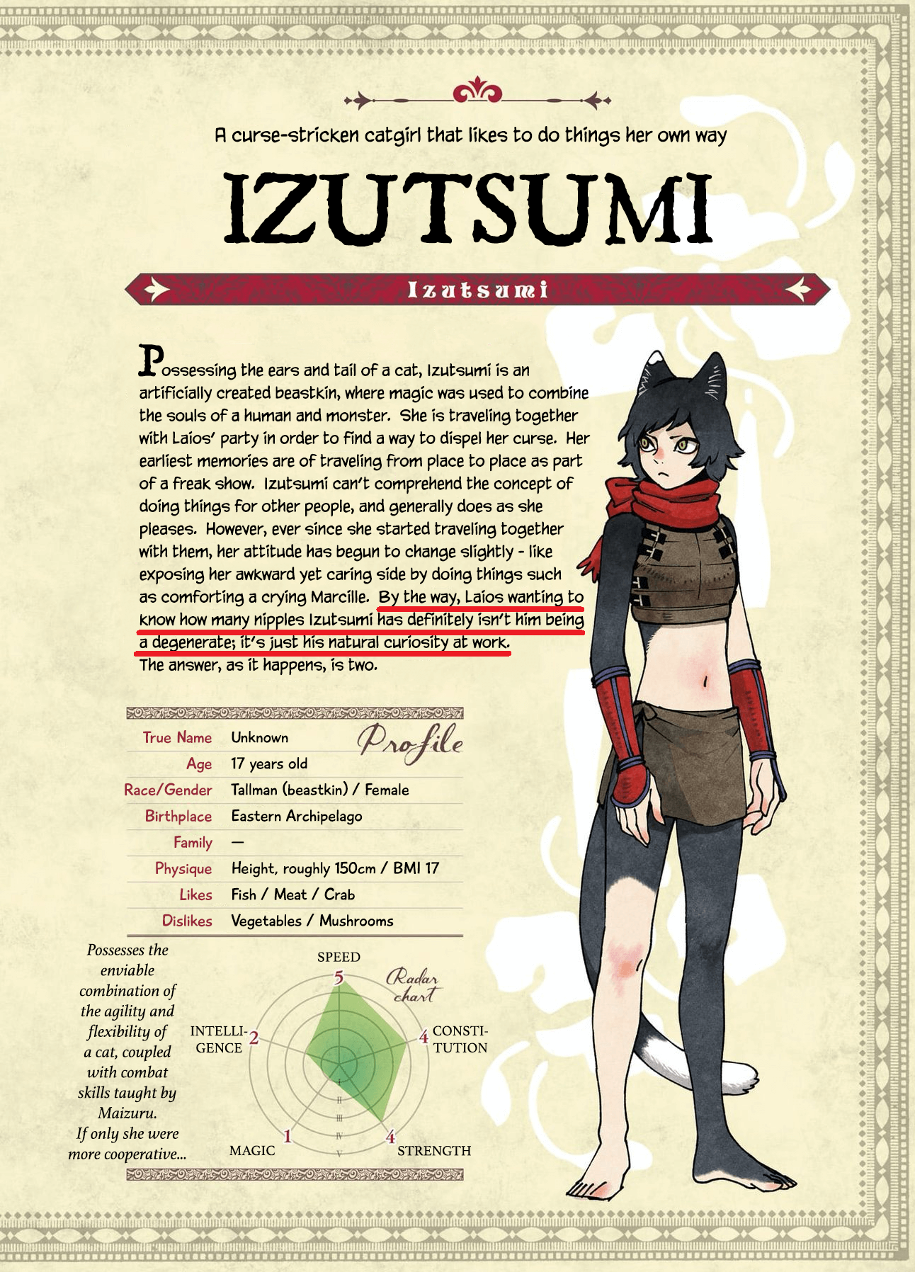 >>285685002Chilchuck understands that the reviews are for the benefit of others that don't already know Laios. Chilchuck personally can work with Laios and understands that, despite appearances, Laios is surprisingly good at his job. But he is also *exceptionally* difficult to work with. Chilchuck would probably just warn people that working with Laios is sort of a devil's bargain, where you are going to get a smart and effective party leader who will do his best to keep you alive even in situations that are wildly out of left field and above your pay grade, but you're also going to hate every day of it because you have to wrangle his autism. The good news is that he is flexible and listens to feedback, but an inexperienced adventurer who was working under Laios wouldn't be able to manage him to the degree that you need to put your foot down sometimes.