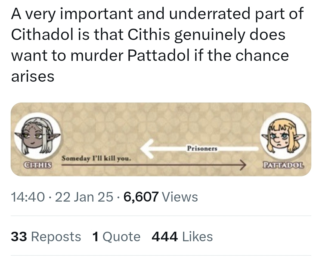 >>285723018I think if Cithis gets released she won't have much reason to try and kill Patadohl. At least until she gets arrested again.