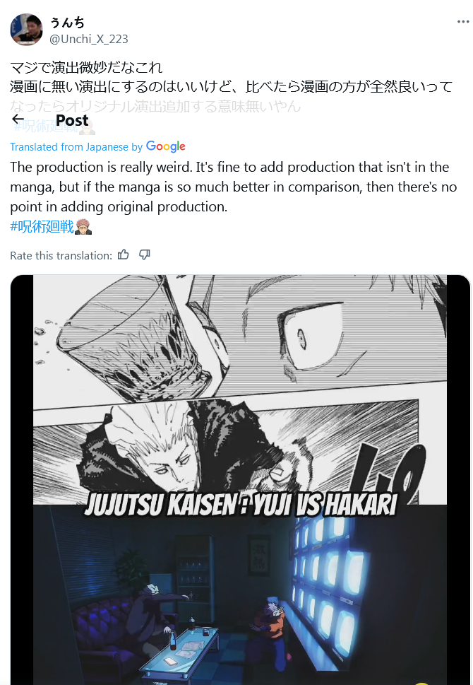 >>285686471>but holy shit please no more episode 4 slop for the love of god.I think the rest of the season will be fine. I think Yuta's fight might suffer though since Gosso said that's a high priority fight