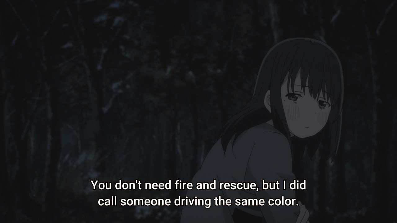 This really kinda pisses me off.She fell in a river in the middle of fucking WINTER. CALL A FUCKING AMBULANCE.She could literally die of shock and hypothermia. Especially someone as comically tiny as her, she'll have literally no circulation and lose body temperate a lot faster. And then you stick her in the basket for a joke scene, so that the wind chill can literally freeze her to death faster after you just spent like two whole episodes talking about how brutal the cold is? Goddamn this anime is kinda dumbass.
