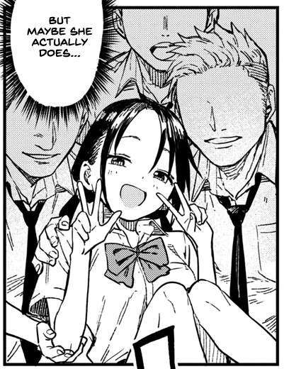 >>285689474This girl… Is she not as dense as we thought ? Since she complemented Karasuma for coming to her aid and also this >>285689534 too. She is aware that Karasuma is hitting on her!