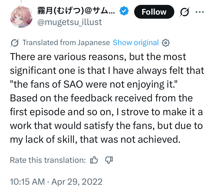 >>285699655It was supposed to cover the first 25 floors but then became Asuna Sue the series.
