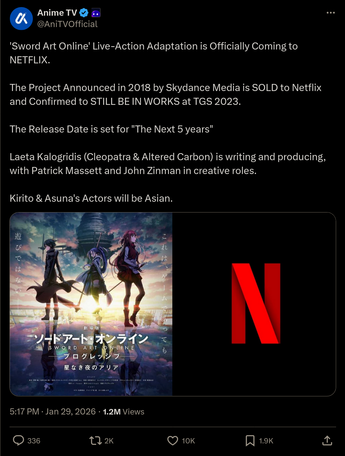>>285717700https://nitter.net/gamerturk95/status/2016857185062437303#mIn the bottom right corner at the end it says "Bandai Namco Entertainment" so it's probably a licensed game. Dude says it's "live action" but it's obviously CG.Bandai has published games by a bunch of devs using their SAO license. There's no telling who the dev behind the project is or anything.>>285719208Yeah, but it's Netflix gaijin slop made entirely by Americans, probably with no Japanese involvement or input.