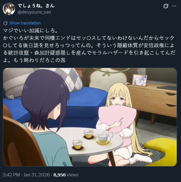 >>285705593Wow japanese yurifags are vocal about the new MV and they are not happy.