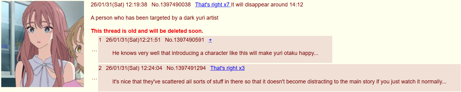 >>285711359That's a porn board and you can't discuss yuri series there without getting bombarded by porn and schizos.