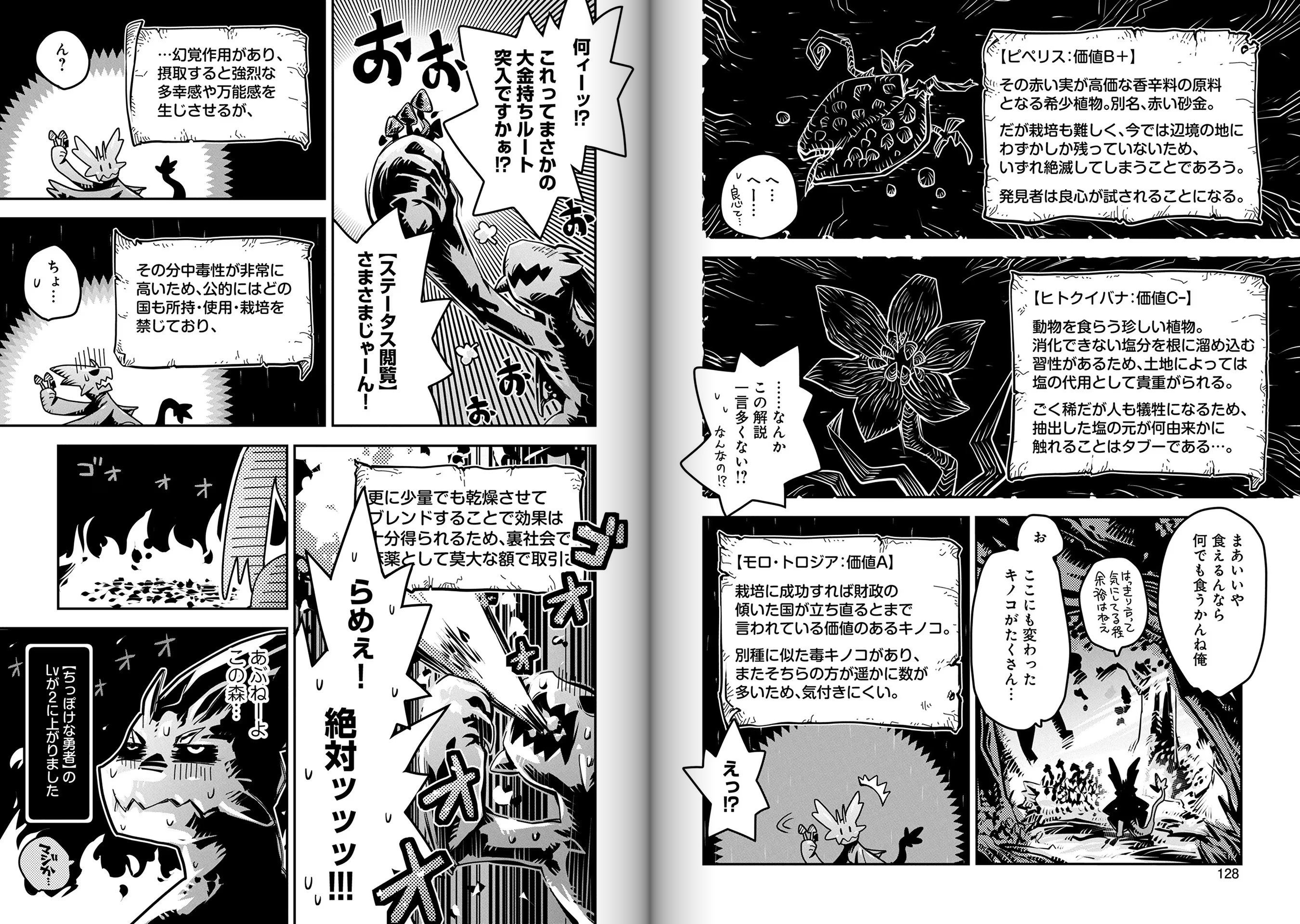 >>285707124>Maybe I’d take it with me anyway. It said it only gave mild paralysis, so maybe it wouldn’t actually be that bad. I could use it to get the resistance skill.>[...] Yeah, this is looking like real soup! It makes me so nostalgic I might cry. I should try that yellow-and-black-striped mushroom. What was it called? Lightning Shroom? Its status said it caused paralysis, but that it tasted good. Hmm…it makes my tongue tingle a bit, but it’s got a nice texture. Real crunchy. And it soaks up the potortoise broth really well. The tip of my tongue went numb and I couldn’t feel my hands, but that passed relatively quickly. Dragons were amazing. I mean, I knew that, but it was cool to be reminded. Gained “Paralysis Resistance” Lv 1. Excellent, all according to plan.