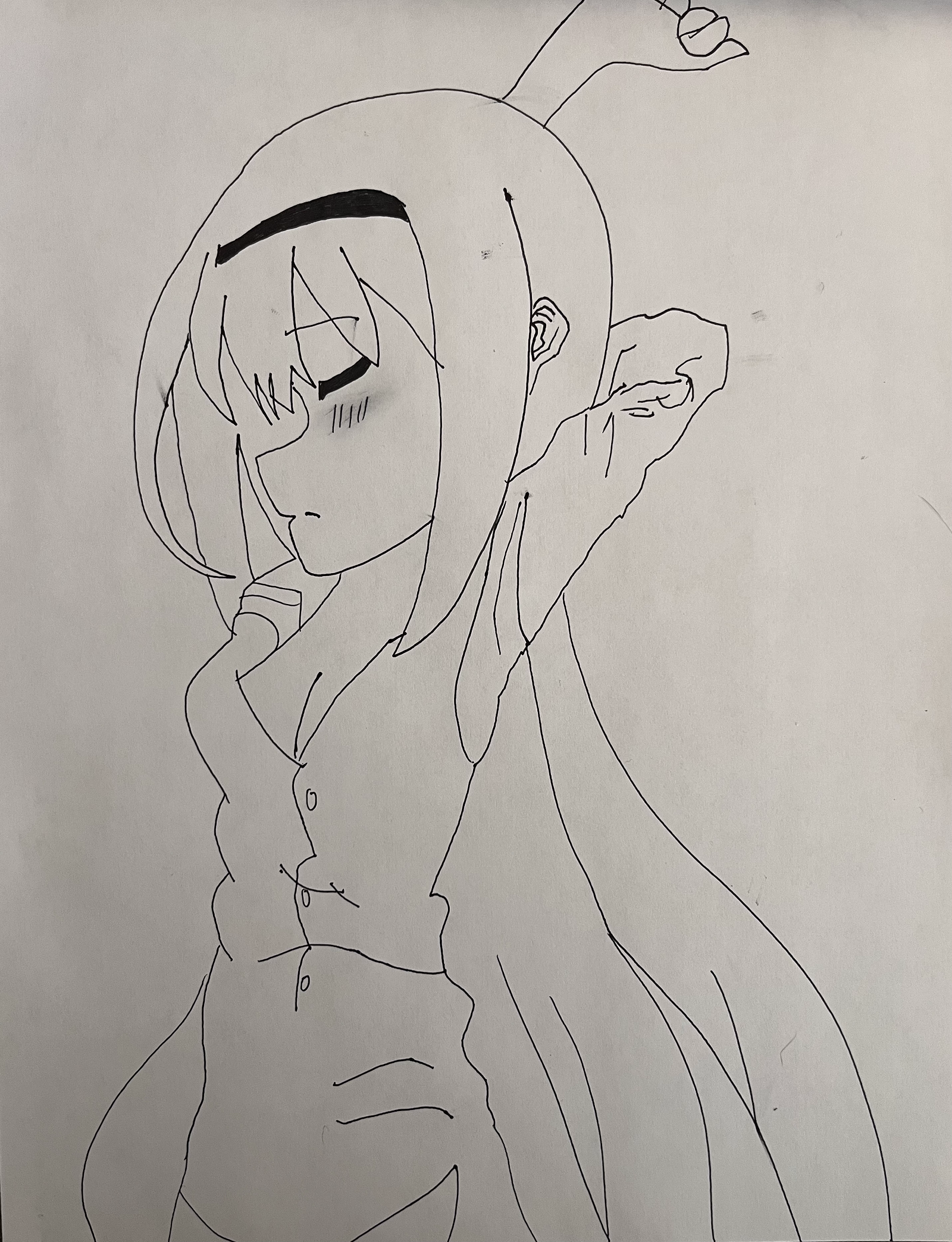 Requesting anything of my adorable little pocky stick, Kyouko Sakura!Self Insert reference (Done in Koikatsu since I can’t draw for shit):https://i.imgur.com/ce5Izpp.png Here are a few ideas, anything is welcome though!>Dressed as a fighter pilot or something else to celebrate Ace Combat 8 being announced>Drinking some hot cocoa>Kyouko but she’s a horse girl (like Uma Musume)>Wearing a maid outfit>Wife in a sexy nun outfit>Wearing a suit>Wearing Chris’ symphogear outfit (her dress was already drawn and is really cute)>Playing DDR>Being smug while shitposting online>Peeking out of a pocky box>Something involving my cats and my wife https://imgur.com/gallery/cats-7WN1tnp I hope you all have a wonderful day!