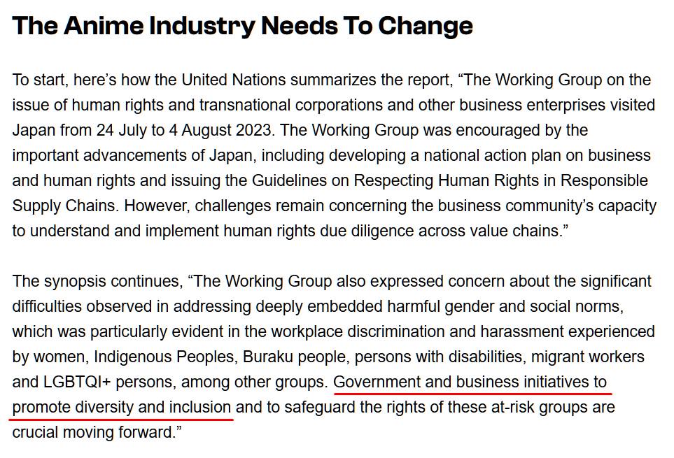 >>285754868>Yes diversity and inclusion... in workplaces, not in animeThe word promotion here is the important part and it implies that Japan should also implement these policies in their media and there is also the implication that if the society changes the media also changes the media.>not that it is even objectively a bad thing.Why? Why should they employ more foreigners and promote them in the workplace? This also has the side effect of importing foreign labor to change the demographics and decrease their salaries and making the job market worse. Everything gets screwed up for the average japanese. Why should they promote faggots and trannies in the workforce?Why should they want more women in the workforce? It only lead to a worse job market and less children.You show your leftist ideology.