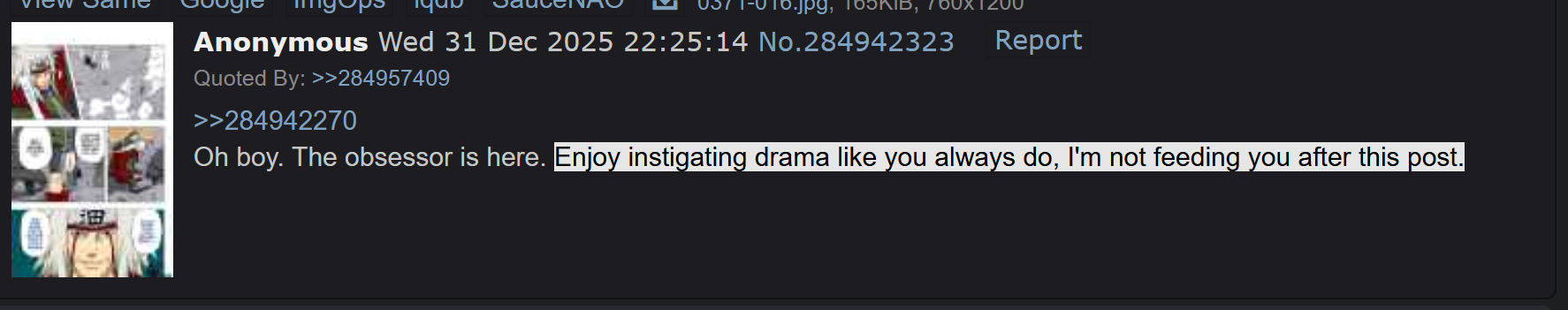Sasukejeet probably malds that he wasn't here when the site actually had more traffic and Naruto threads were full of posters.
