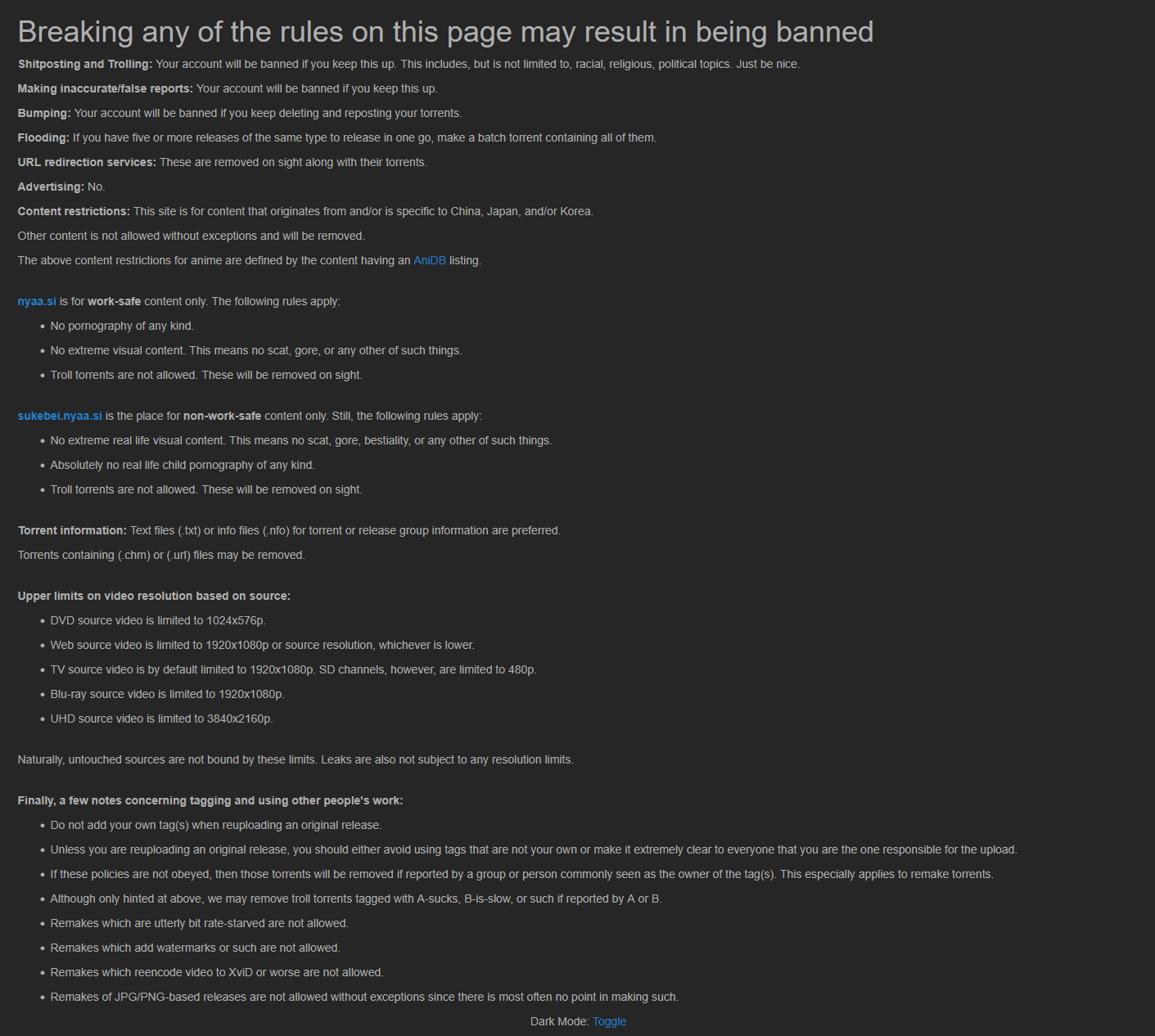 >>285858164Damn nyaa.si must be like 4chan, with its autistic enforcement of rules that have become pointless, while not adding new rules for shit that matters.Animetosho also writes>I don't intend to leave AT in a semi-unmaintained state (unlike *cough* Nyaa.si),