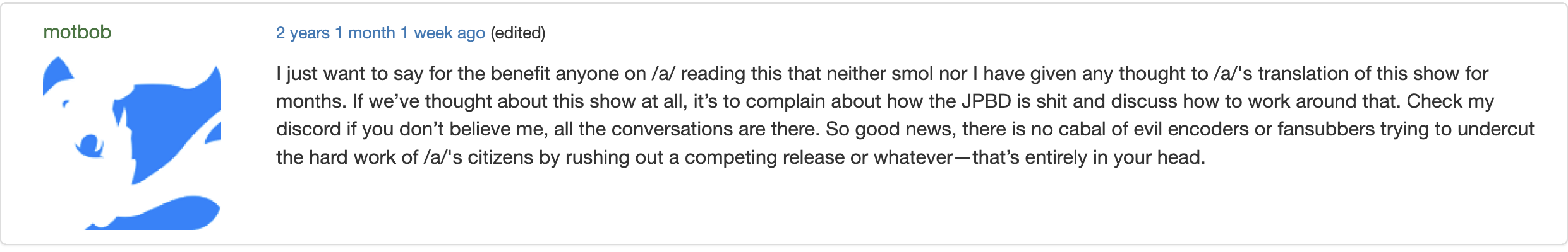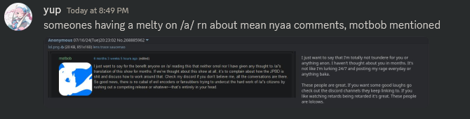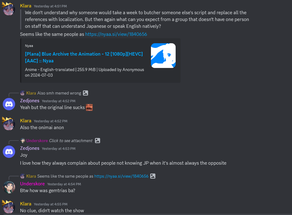 I'm so out of the loop, I don't understand a single word from this thread. I haven't followed fansub or nyaa drama since 2017.It feels so good to be an ABchad.