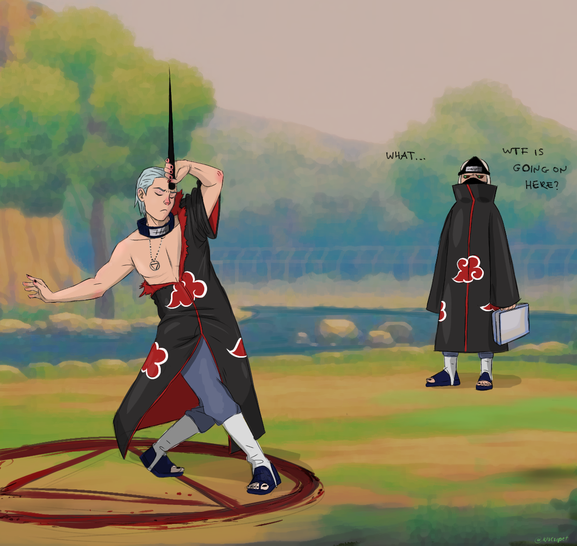 >>285873829And I've come to wonder why his blood circles are always so flawless. Do you think Deidara and Sasori get jealous that he's such a good artist on accident? He probably draws a perfect circle with his feet, while telling them art is gay to their face or something