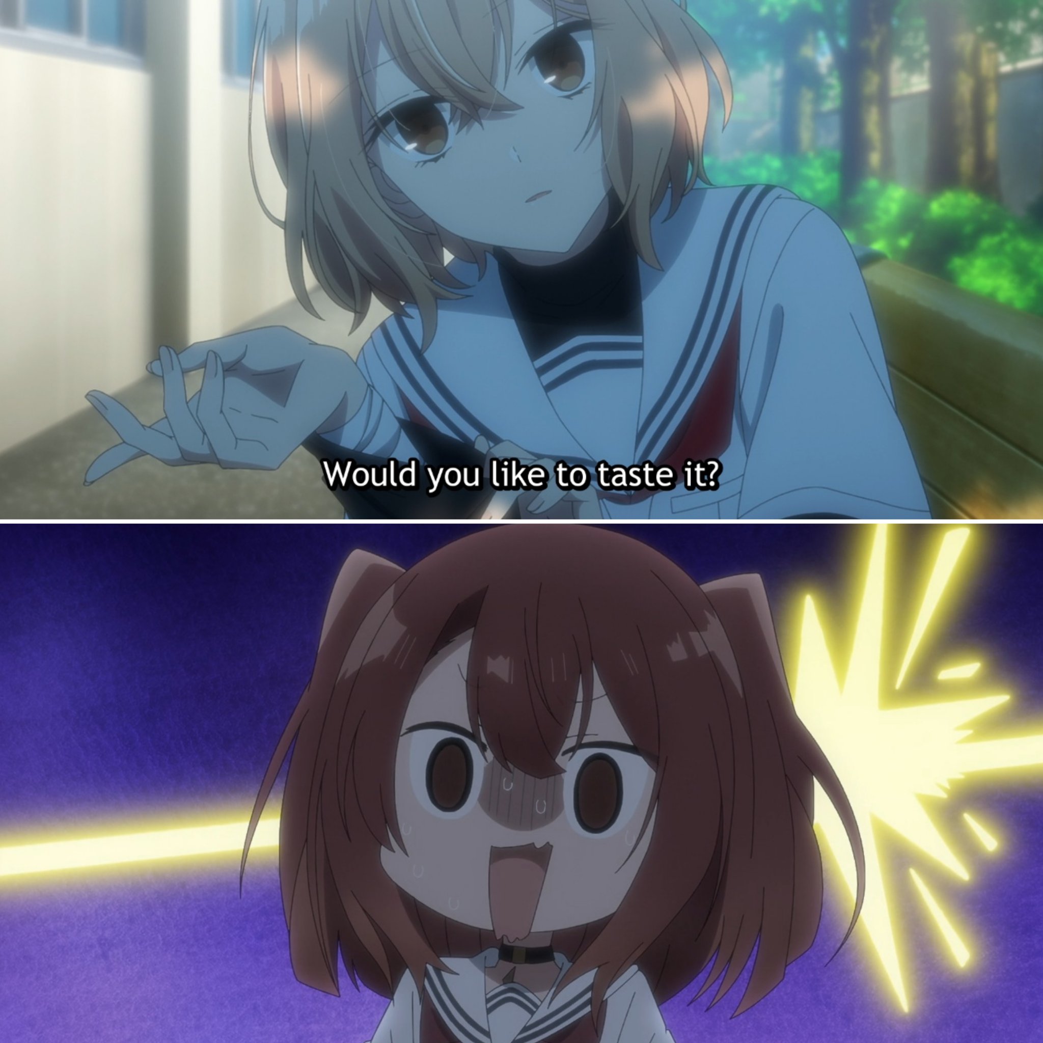 >see random clip of "Happy-Go-Lucky Days" on twitter>looks like a cute wholesome yuri >two seconds into the movie "My first kiss was with a girl it was true love, and now that girl is getting married to a man">now I will get this new girl a met as my second choiceI am so tired of this shit. Why do authors think this is what people want in their yuri stories? What do they think that adds to the narrative? You could have omitted that entirely and still told the same yuri story afterword.