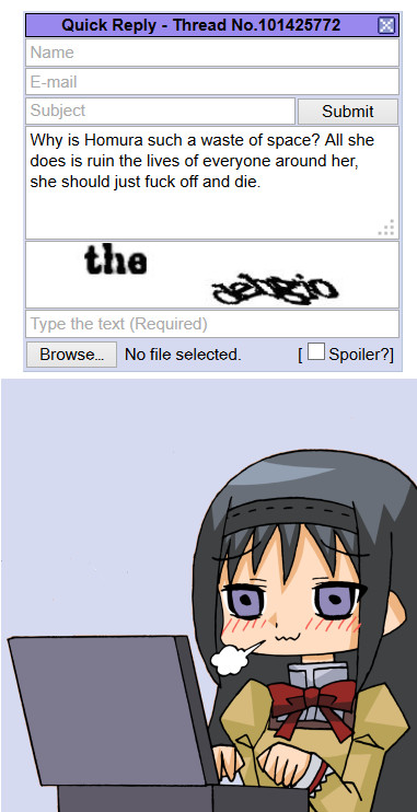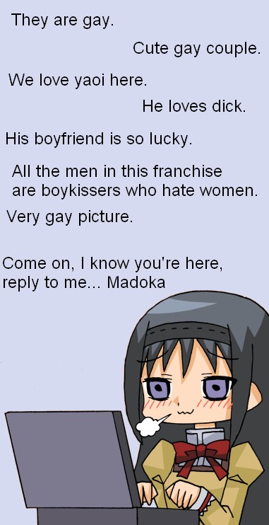 >Btfo'd off site so now he's shitting up the Madoka threads againWhat compels a person to be like this?