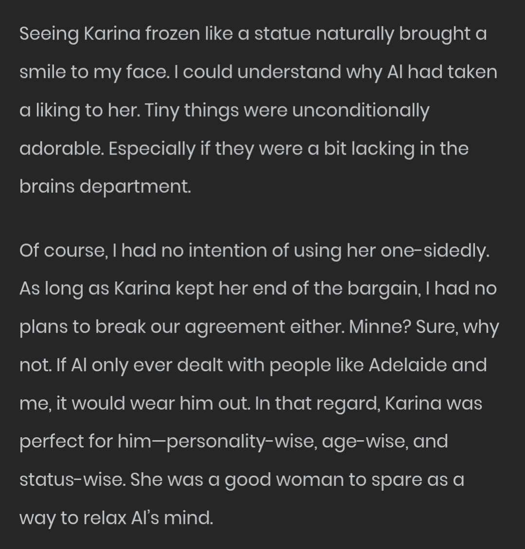 >>285951332The fucking furry went into his bed and plaintext asked to fuck her. Author still found a way to contortion MC out of it.