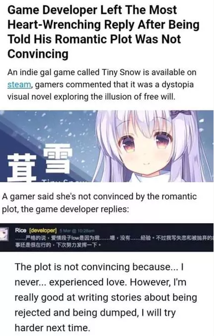>mc hates this girl who's really sweet and nice to him I need more.