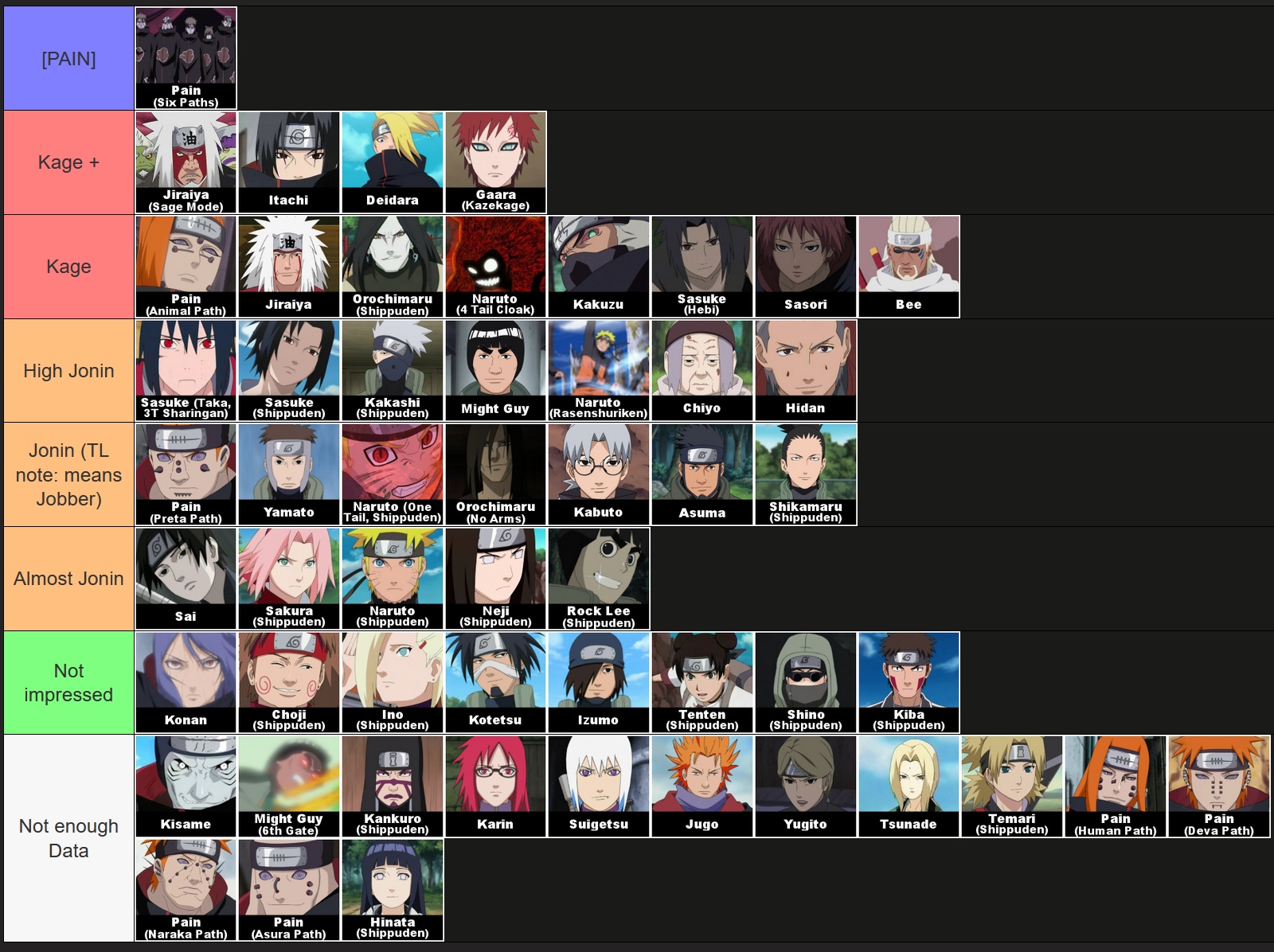 >>285942957Live tier list. Bee hasn't shown anything that impressive and Sasuke go weaker since he lost his mark