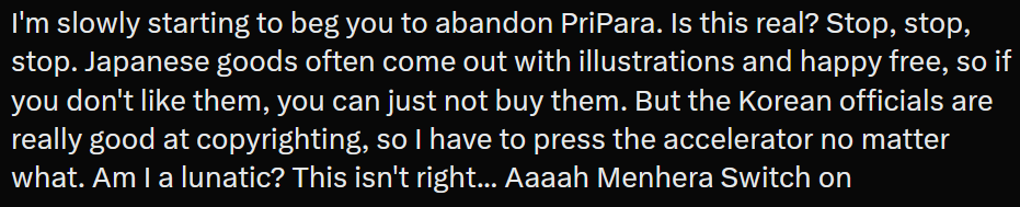 https://x.com/nyalra/status/2021176134952505712I remembered that ainon linked this dude's blog about Prichan before, his like of Daia is obvious but he's also a KAWAII appreciator apparently.