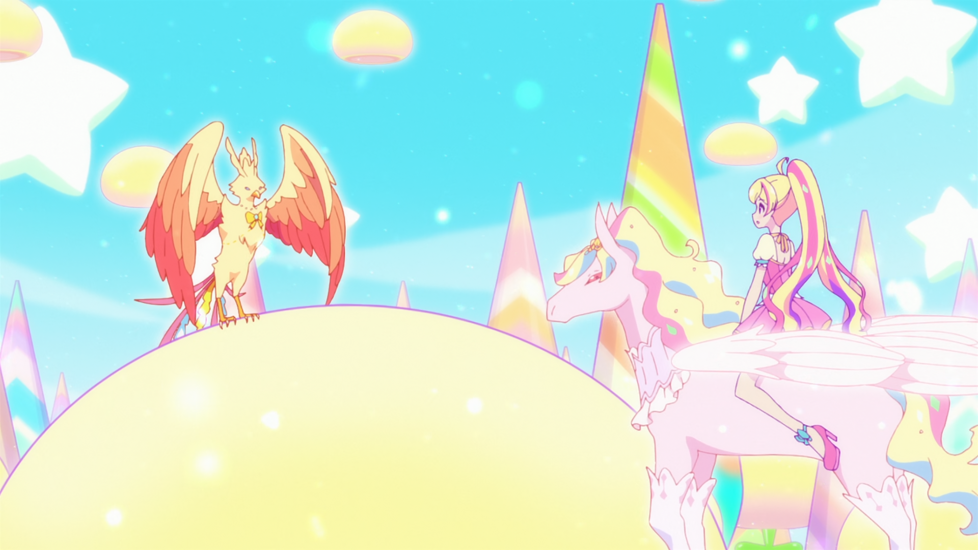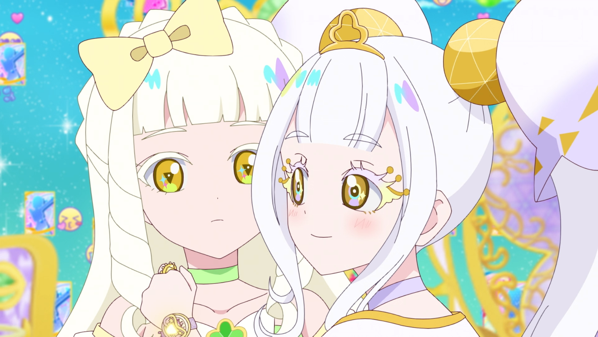 >>285952675Long, long ago, in a secret flower garden deep within the forest, lived a lonely princess.That princess had two sides to her: her role as the princess of the ancient Clover Castle, and another secret identity."I am Ring Clover! I want to make everyone smile!"She was an AiPri, admired by everyone for her singing, dancing, and fashion. Meeting the smiles of so many "Pri-friends" during her performances was Princess Ring’s greatest joy.However, Princess Ring carried a secret she could tell no one."Is the new Buzzrium Change ready yet? Show us soon!"The expectant gazes and voices of the people eventually became a heavy burden, weighing down on her heart. Even so, Princess Ring decided to take on a challenge—to achieve a miracle that no one had ever seen before.Then came the night of her 15th birthday.Jewel, Space, Animal, Flower, and Melody.With a bright smile that hid her struggles, Princess Ring finally illuminated the AiPriVerse with the light of five Buzzrium Changes at once.It was meant to become a legend, passed down through the ages.But in the wake of that miracle, Princess Ring Clover’s heart lost its radiance. And then, that heart shattered into five fragments and scattered into the skies of the AiPriVerse...Leaving all her memories behind."Adieu... Princess..."