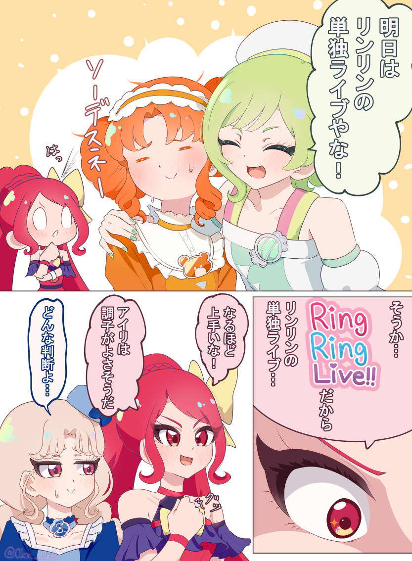 >>285945233>>285945248Seen the first live, want to thank ainon for sharing it. Lately I've been considering a rewatch of either Pripara or Prichan along a couple friends, all things considered, was nice seeing some antics once again, namely Mel being Mel and Akagi-sama and the yellow one secretly being NAKAYOSHI. Daia covering Naru's song was unexpected and made me quite happy, this is one song that always cheers up. Lastly, Sadame's an interesting girl, her song was cool and I quite enjoyed all the "sadame-" silly gags, looking forward what she's plotting behind everyone else's backs. Oh, and Merumeru saying "Damedame" made me crack up.