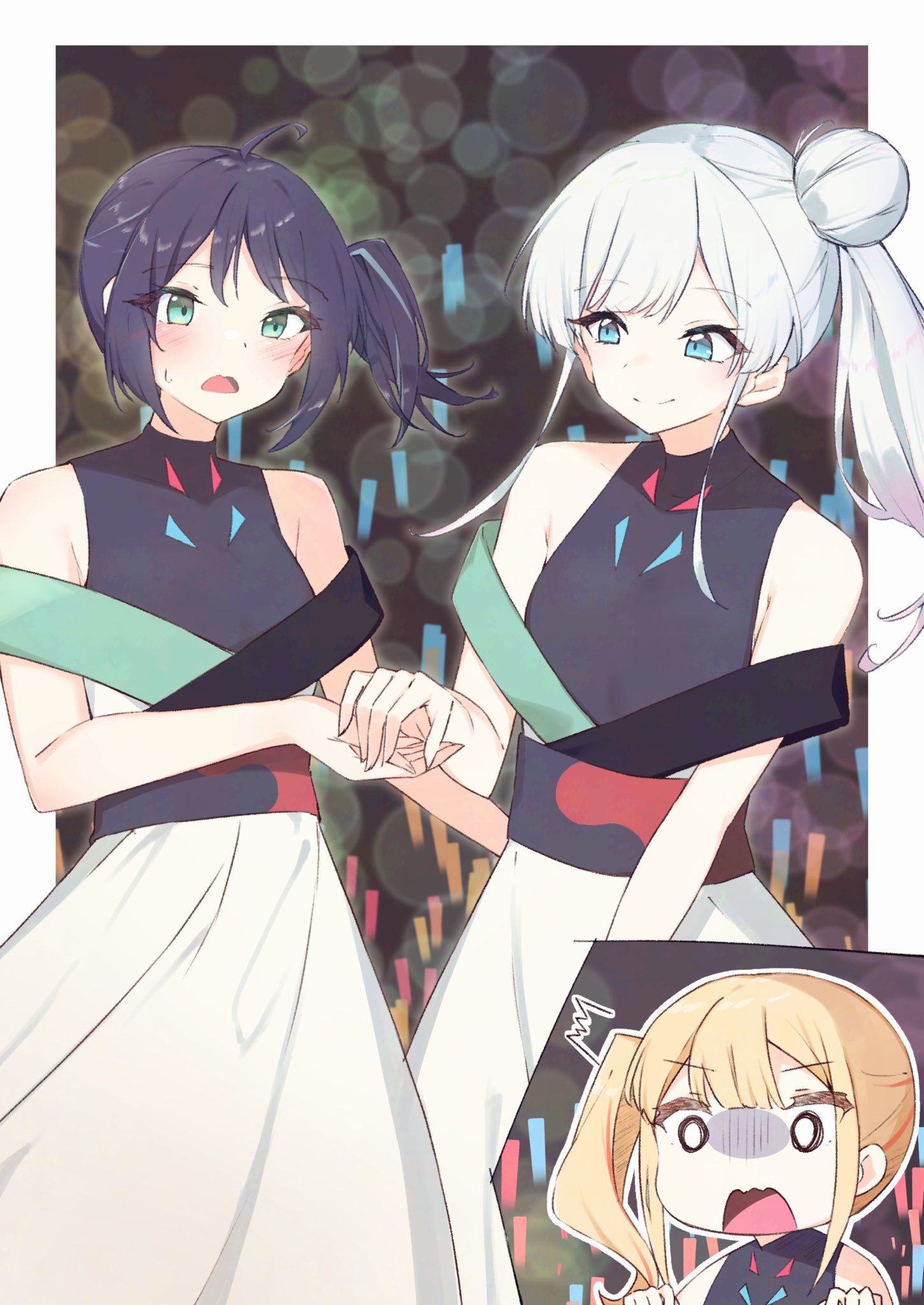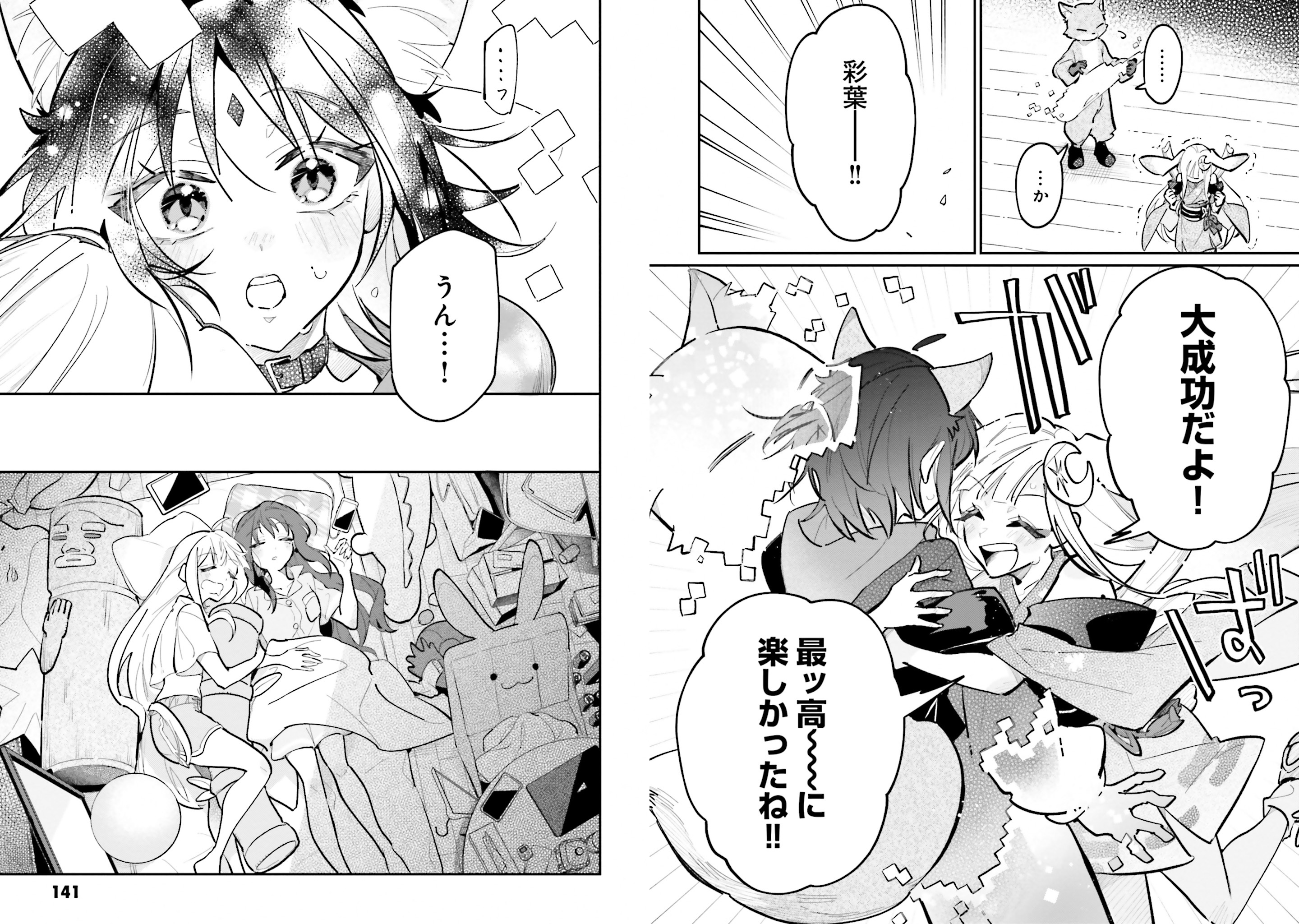 >>285955488https://x.com/shirofox/status/2020854026066166264page 1 Iroha, you okay?Leaving work YeahIt’s tough, but compared to high school I’m actually getting proper rest now.And It’s an important time,so I'm doing my bestI see.Well, for Iroha who's working so hard Ta-daa!A premium friday night present! H-HeyRoka! What are you doing here? Yachiyo called me I figured maybe you should vent about work and blow off some steam once in a while.But this digital songstress Yaccho can’t drink with you, so…page 3 Well then, I’ll leave the rest to you two youngsters~Huh, wait, Yachiyo?! Geez......Shall we go?Only if you’re okay with it though Looks like she already made a reservation.…Yeah.I’ve been so busy lately, so we haven’t talked outside Tsukuyomi.I’m really glad to see you again....Physical contact is important, isn't it?page 4 And besides…that girl probably likes Iroha too…..yaguya...Yachiyo Huh..Iroha..? page 5 How about the drinking party? It's over.…I thought you weren’t coming back tonight.Huh?Do you know how much I love you? UghSorry, I feel sick…You shouldn’t be using your smart contacts when you’ve been drinking.ugh..So uncool That's not true.Thank you, Iroha Sorry, this is going to be one of those where Yachiyo —because she believes physical contact is important— is aware she’s been depriving Iroha of those kinds of experiences, so she sends her off with someone she can trust; and even though she sets everything up thinking “well, if something does happen, it can’t be helped,” nothing particularly romantic actually comes of it and they just part ways, and Iroha properly comes home anyway. and meanwhile Roka’s left thinking, “Iroha was cute today too, drinking together with her was fun… I’m a little lonely,”—that kind of thing.