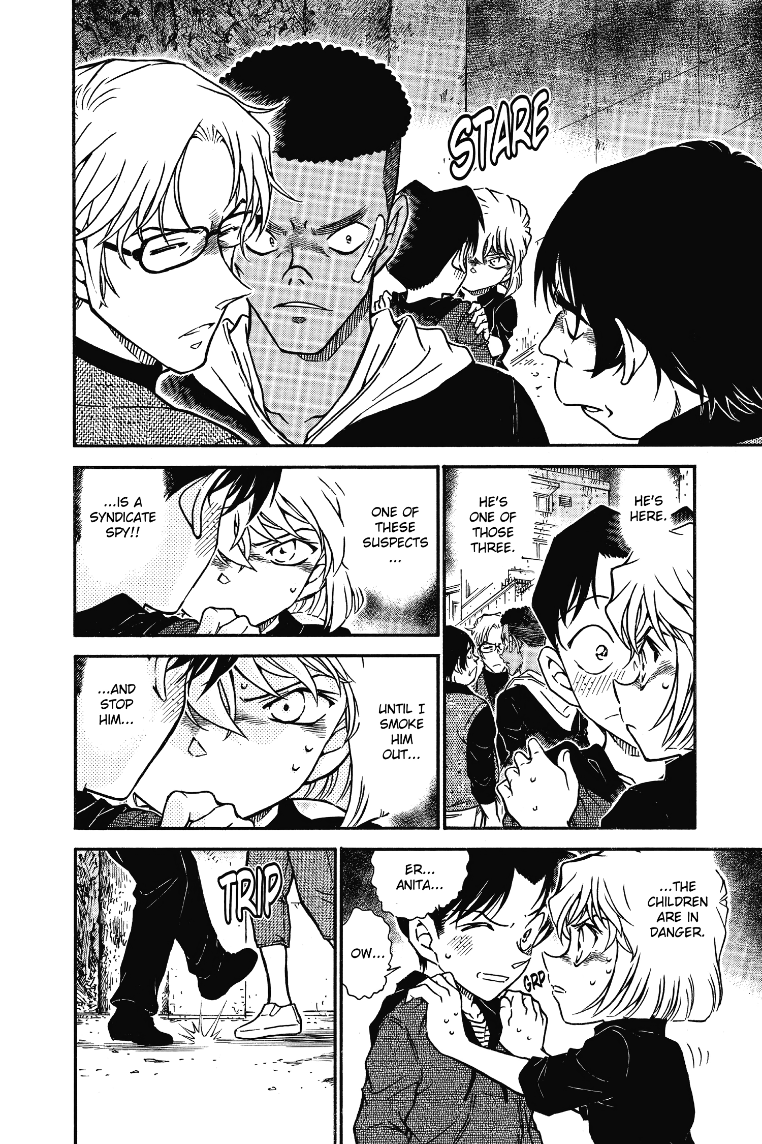I hate how Conan always has to know and be aware of everything (unless maybe his father is around). Give Anita some credit for fucks sake and let her be the one to spot him