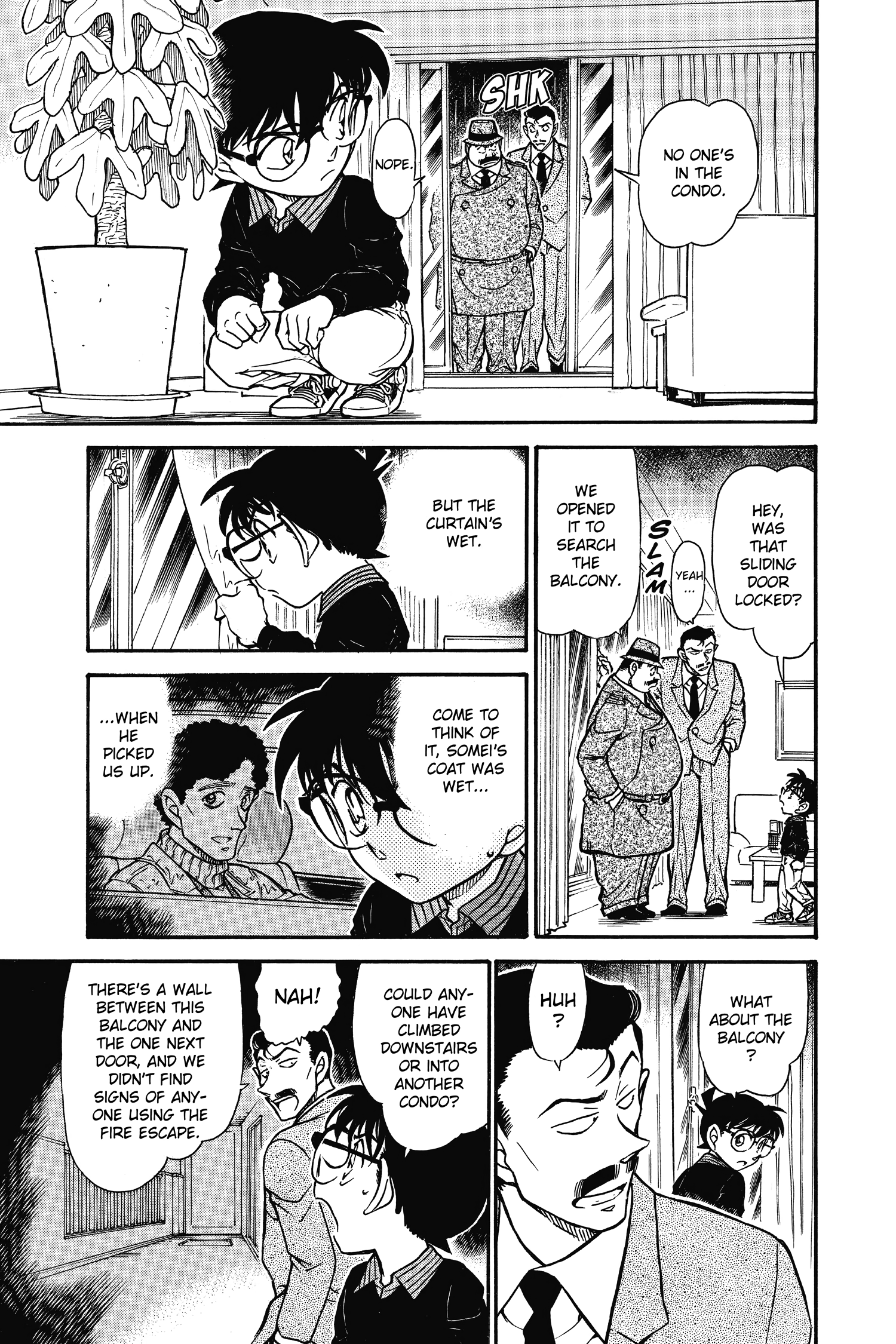 Insofar, this is the biggest mistake in the entire series as far as Kogoro's agency goes: compared to the first panel, in the second a set of windows is missing.