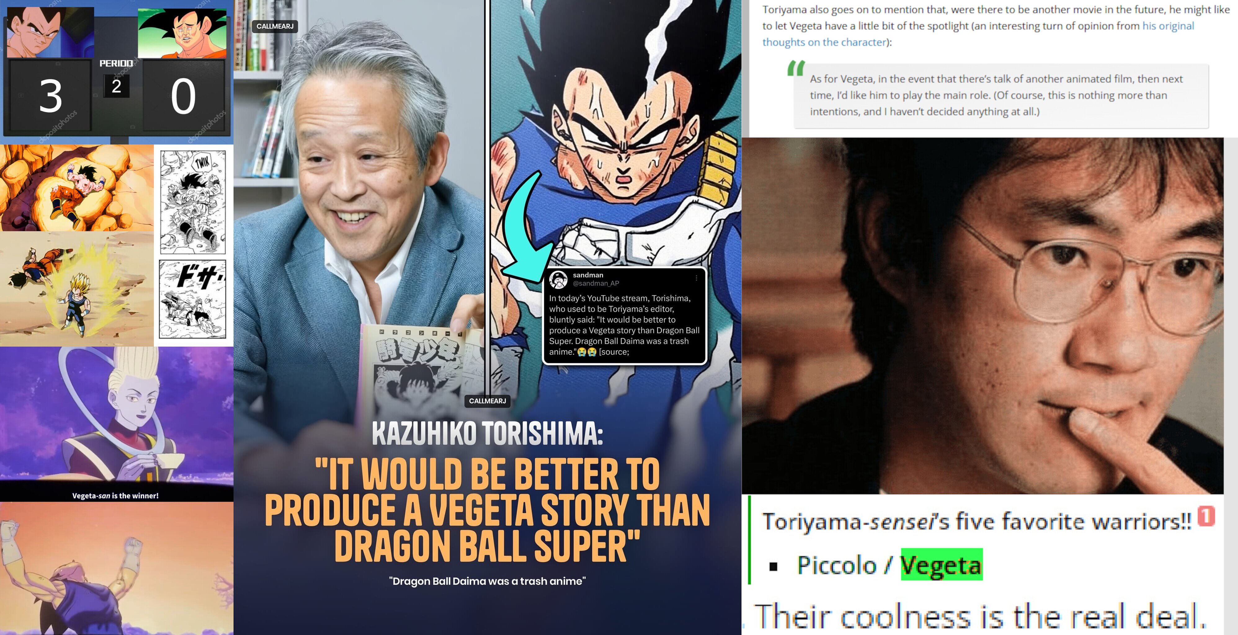>They have been wanting a moment for bejita to shine since the Frieza arc, I keep humiliating him. I created this creature that has omnipotent power of all the universes, people probably thought he would be some sage, old looking being, I thought about it at first, but then I turned him into a retarded toddler, the fans love this kind of stuff.