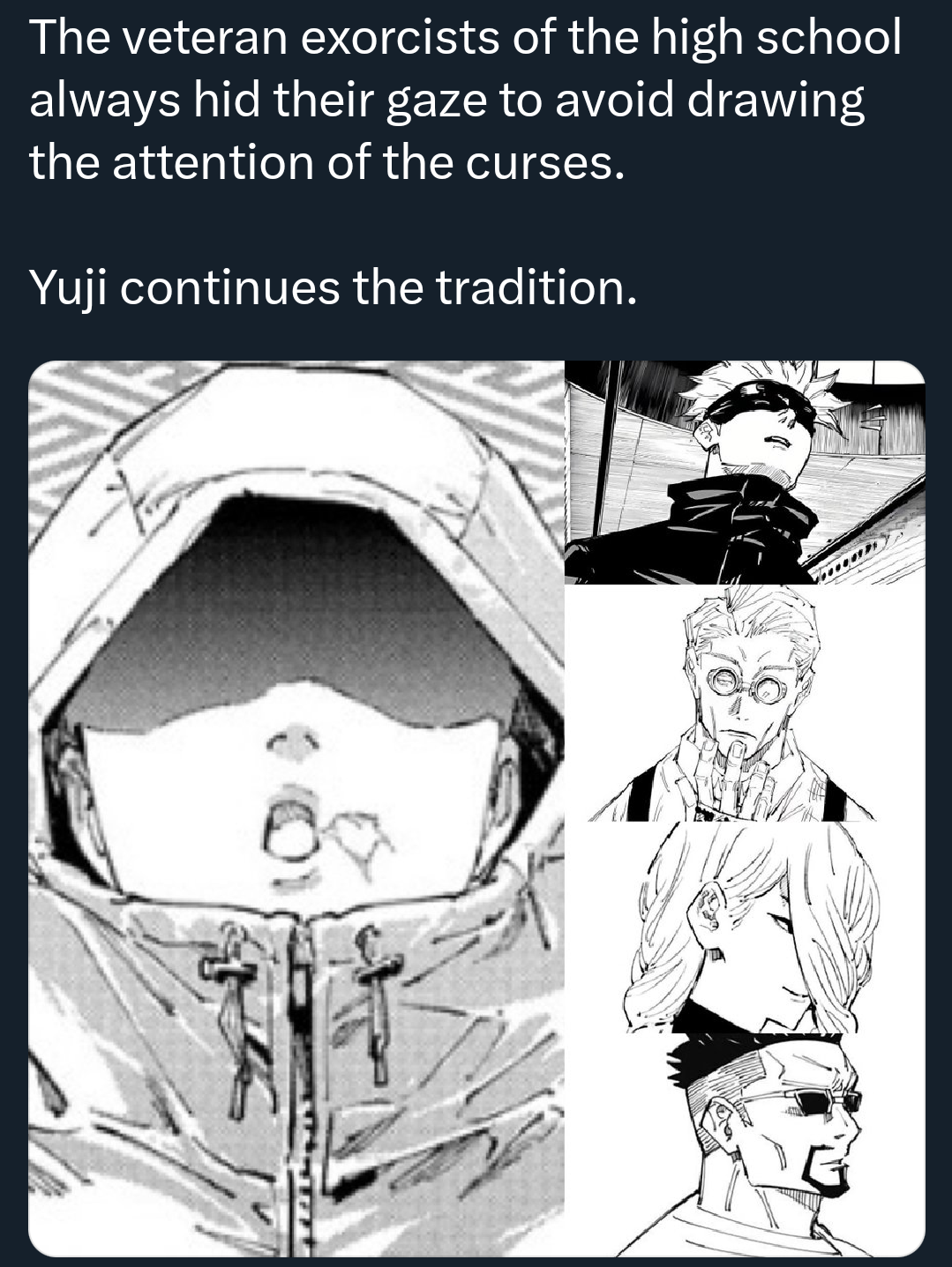 >>285975267There is if you include kashimo and sukuna and end off with yuji appearing. They can also redeem Kashimo by going all out in his fight and the last line would be “What are you even gonna do?”