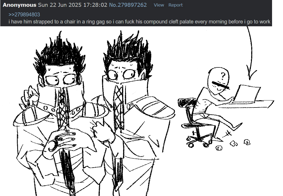>>285980980I can already tell this is the gonronfag making the thread with all the shitty cropping op image. Atleast use fanart, asshole.