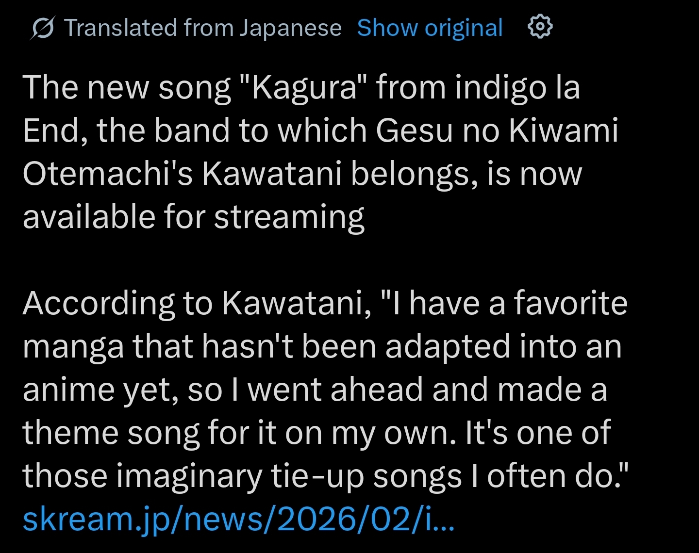 Indigo la end is releasing a song called "Kagura" with a dark city scale theme and the band in suits and if you reverse the teaser you can hear them say "Kagurabachi"
