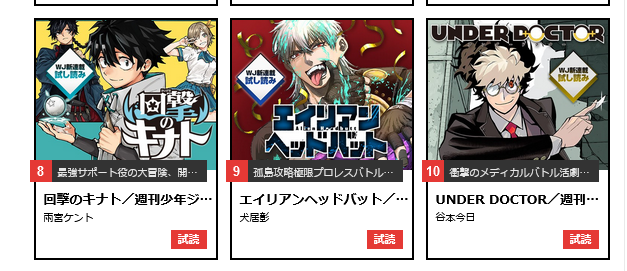 Personally I don't think Nue is going anywhere. We will see. A lot of people felt that Under doctor's subsequent chapters are dissapointments, and while some people liked Kinato, I don't feel any hype from it(it having near the same viewer count in Japan is in it's favor, I personally hate it though). Unfortunately, my favorite Alien Headbutt is too confusing for the smooth brained Japanese who read SJ, so it's getting axed.