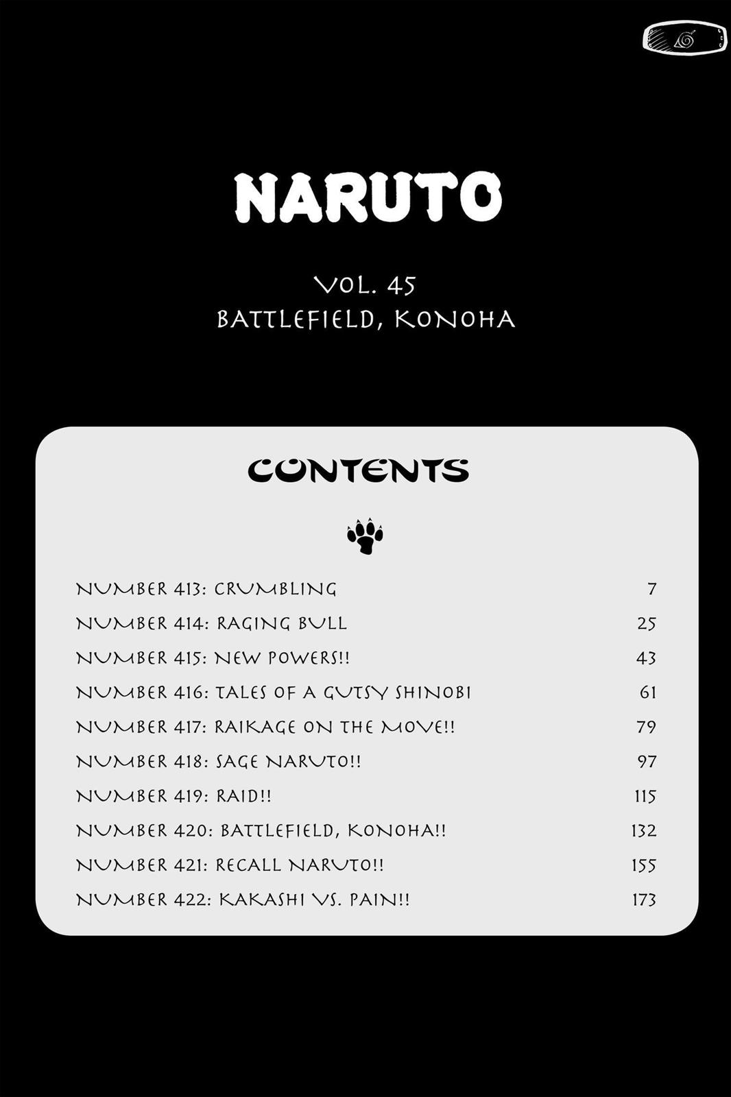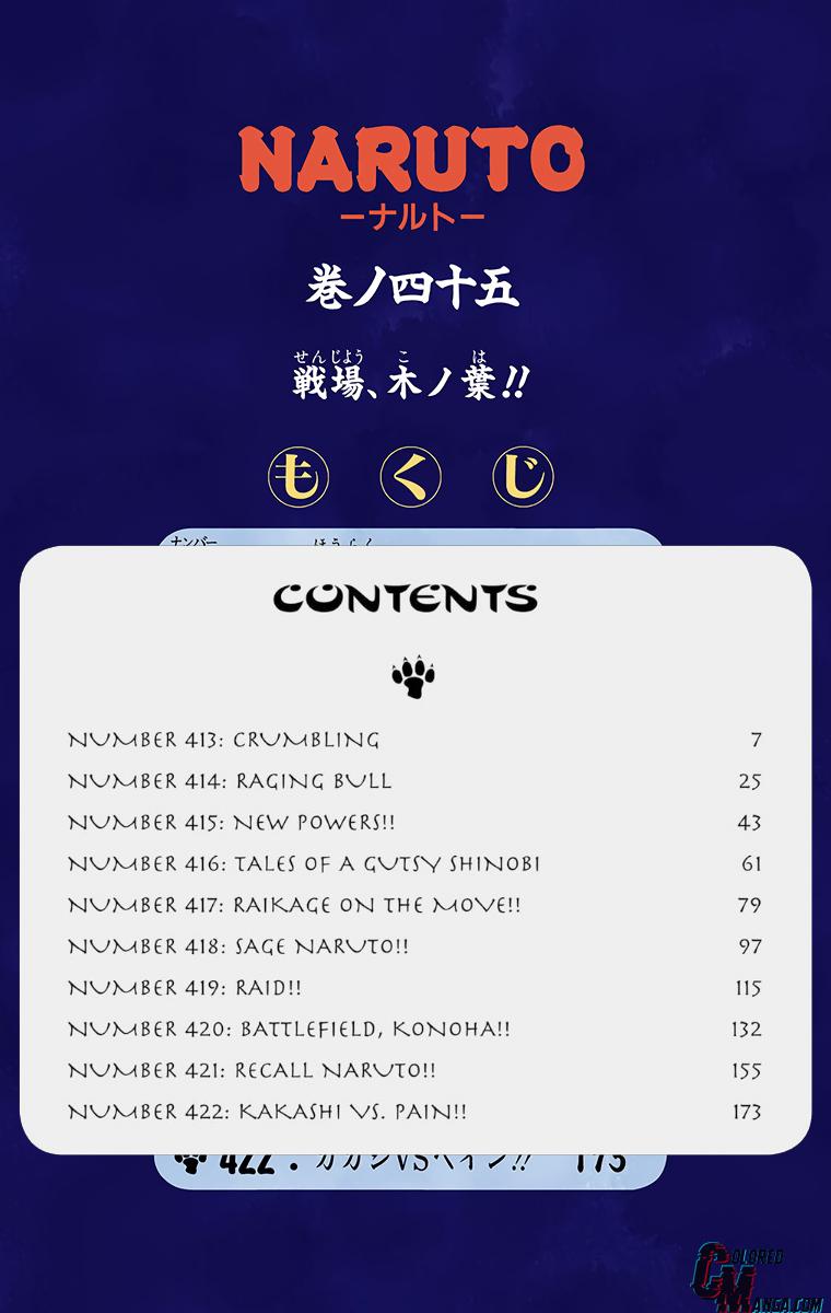 Volume 45: Battlefield, KonohaSenjō, Konoha!! (戦場、木ノ葉!!)Chapter 413: CrumblingPrevious chapter: >>285965270Previous Volume: https://desuarchive.org/a/thread/285742828/Start: https://desuarchive.org/a/thread/274143504