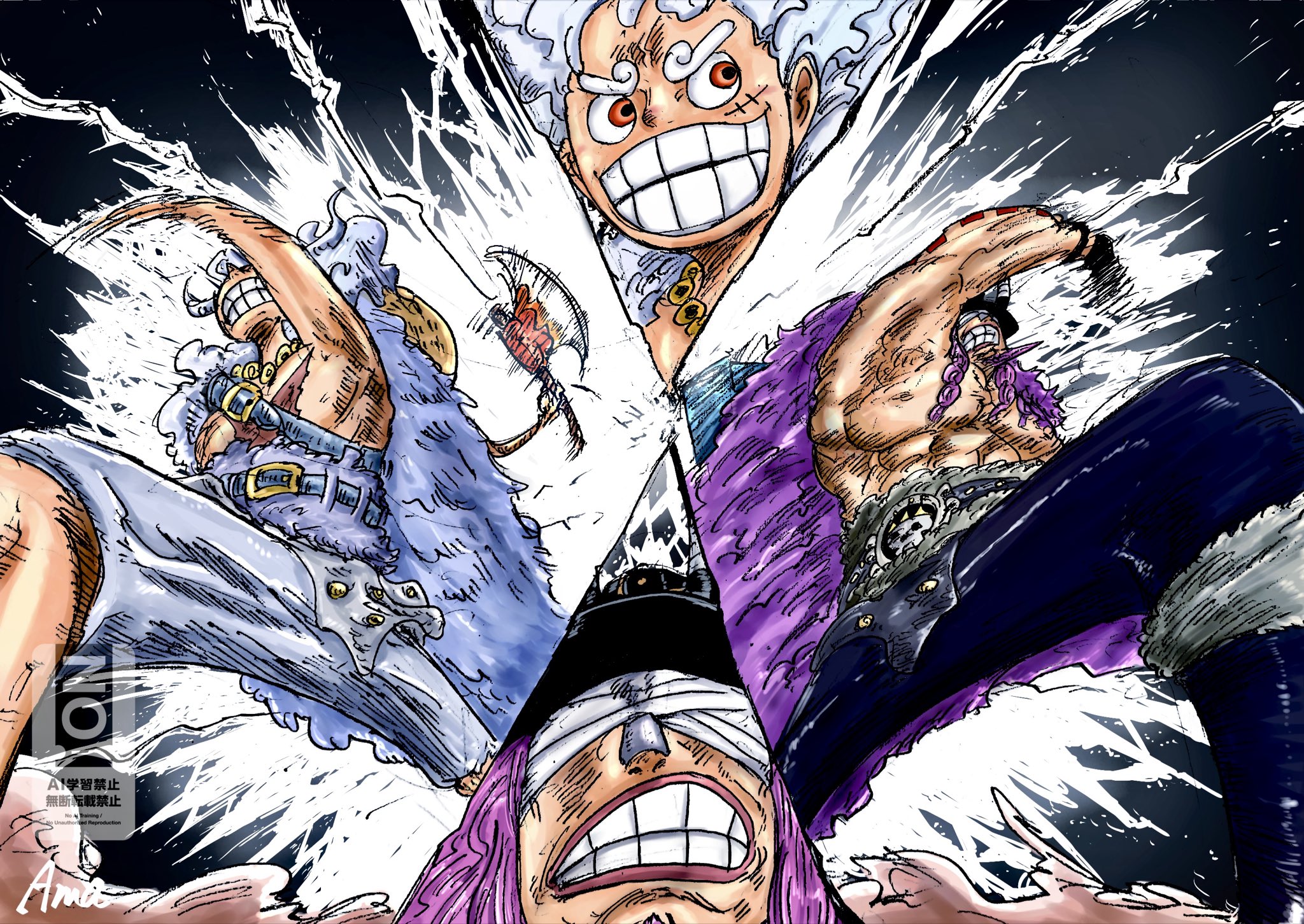 >>286001132The devil thingy in the far left is OBVIOUSLY Imu. The big dragon in the middle could likely be Loki, Luffy is the Nika of course, we just need the modern day version of the hellfire serpent