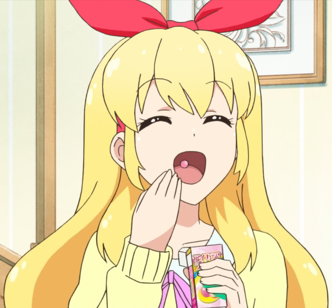 ainon-san you should totally come hang out in our cool aipri party van we have gigaburgers and glowing plastic bows to wear!