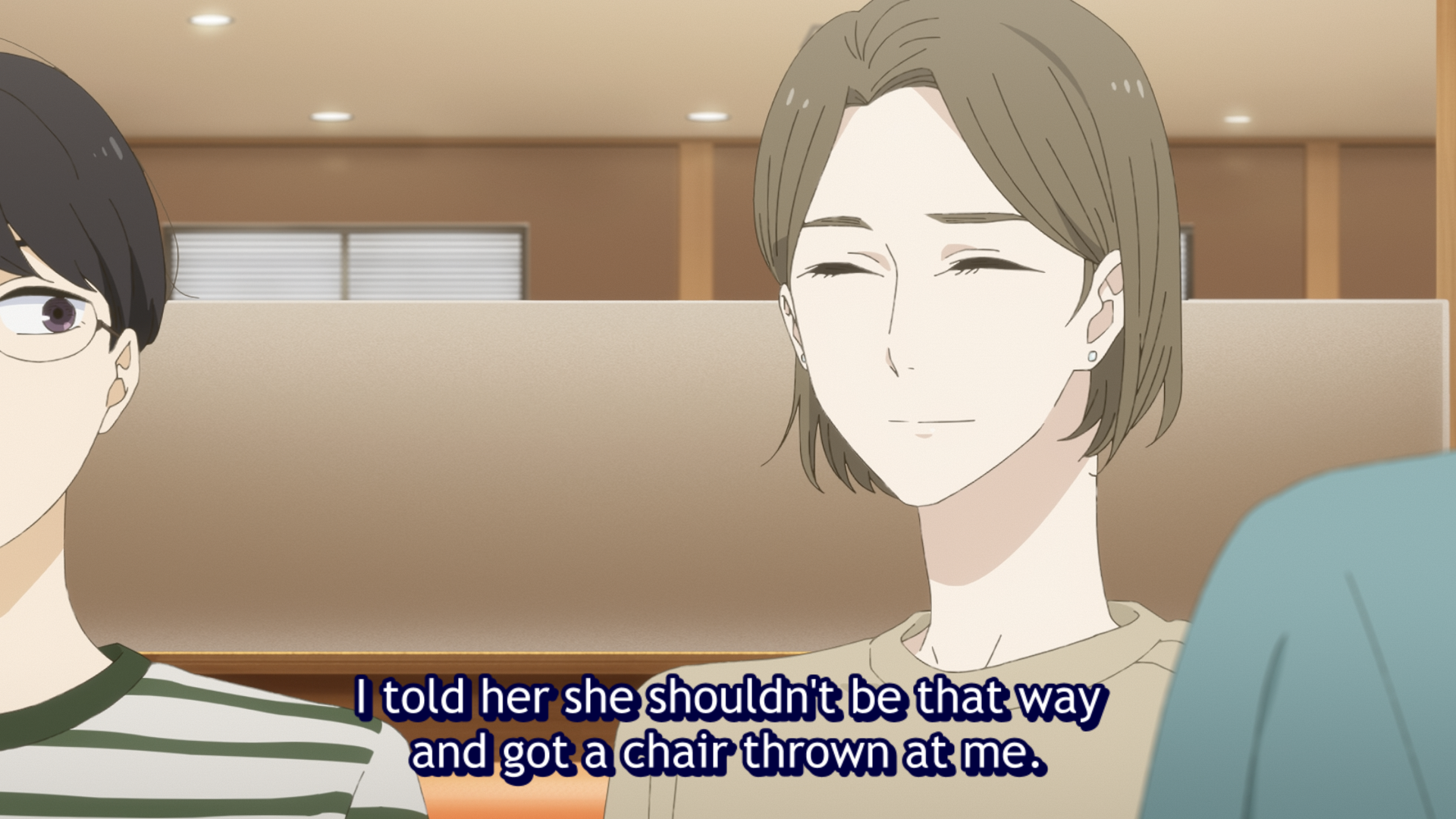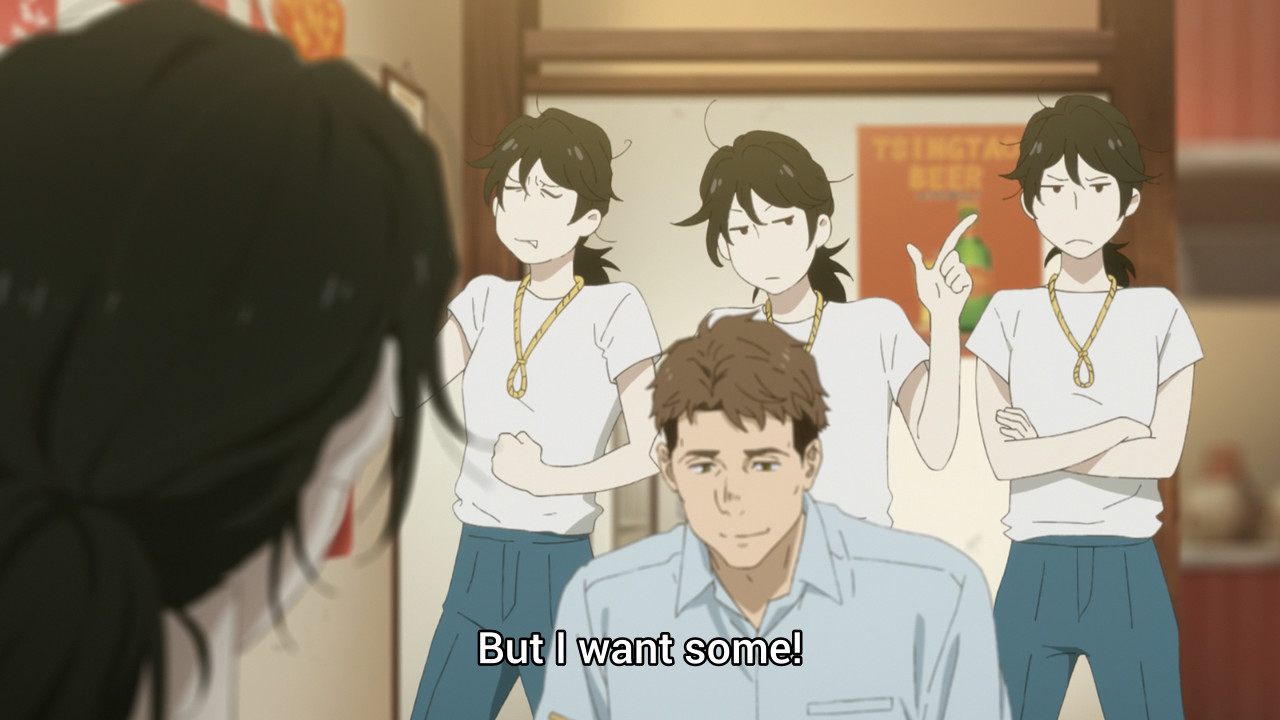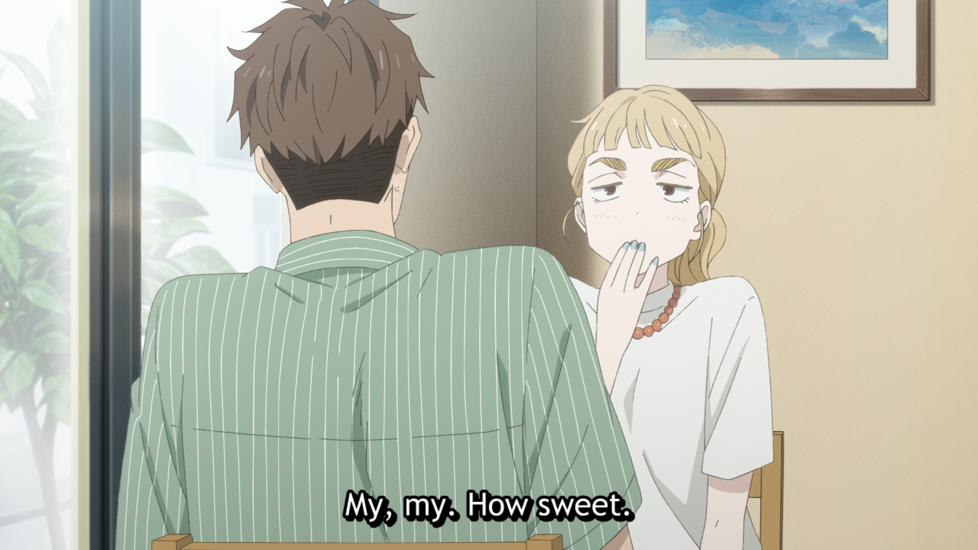 This could be just my memory being bad, but I felt like this episode deviated the most from the manga so far.Cutting the part where Makio is surprised about her sister never getting married feels like it hurts her characterisation, since you miss out on Makio realising that her image of her sister doesn't fully align with reality.