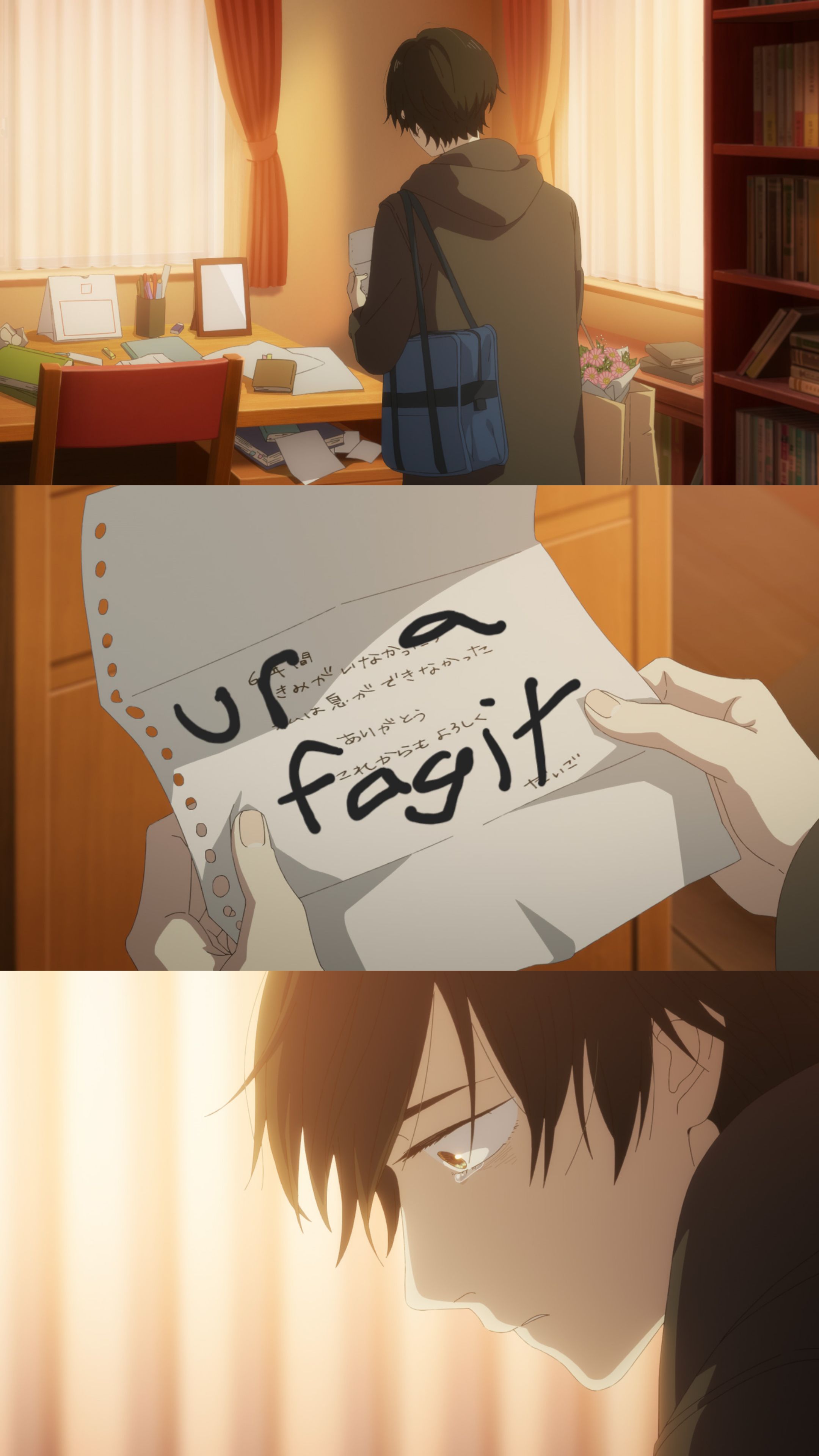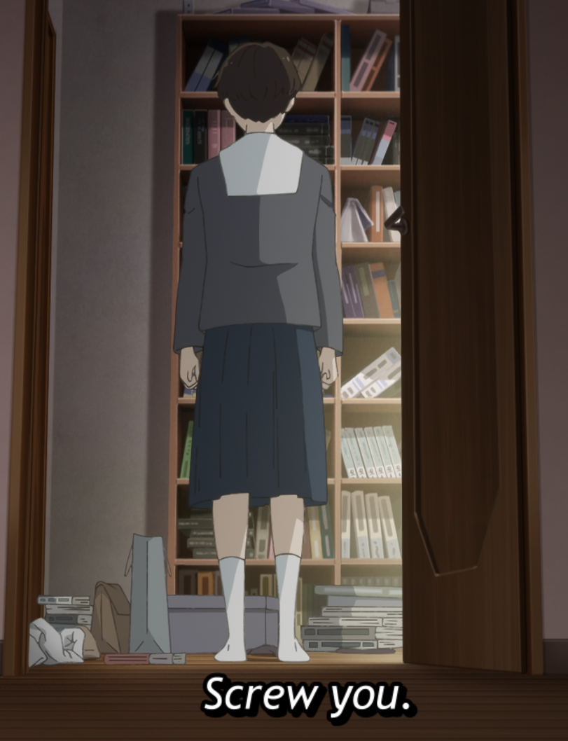 >>286100092Makio told her early on, you don't have to be honest when writing a diary. Asa already feels pretty betrayed by her parents dying on her. This is just it coming to a head. A diary that may just be idealized rather than honest from a person she feels is now more stranger than mother.