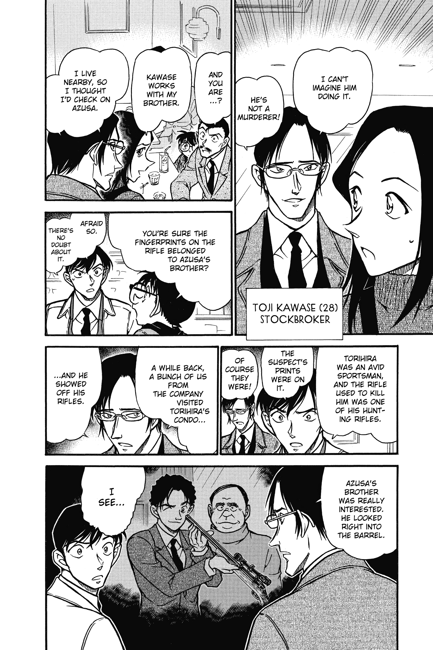 Looking back, Gosho was breaking his own rules quite often during this period to keep things fresh. Case 182 is still unique all these years later. This case is more of a howdunit than a whodunit but the cops already know the how. The last time there was an archetypal Conan case with a murder and three suspects was Eisuke's sendoff, almost half a year earlier in real time.Then the manga kept going and Gosho went back to his tried and true cliches.