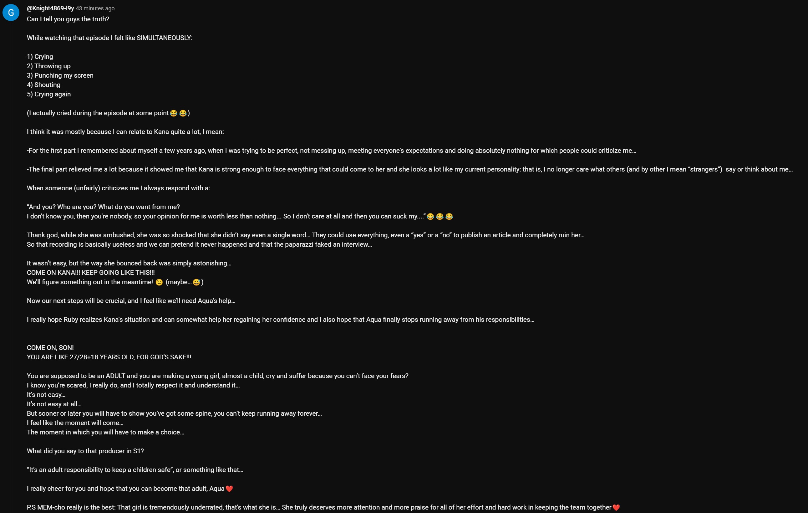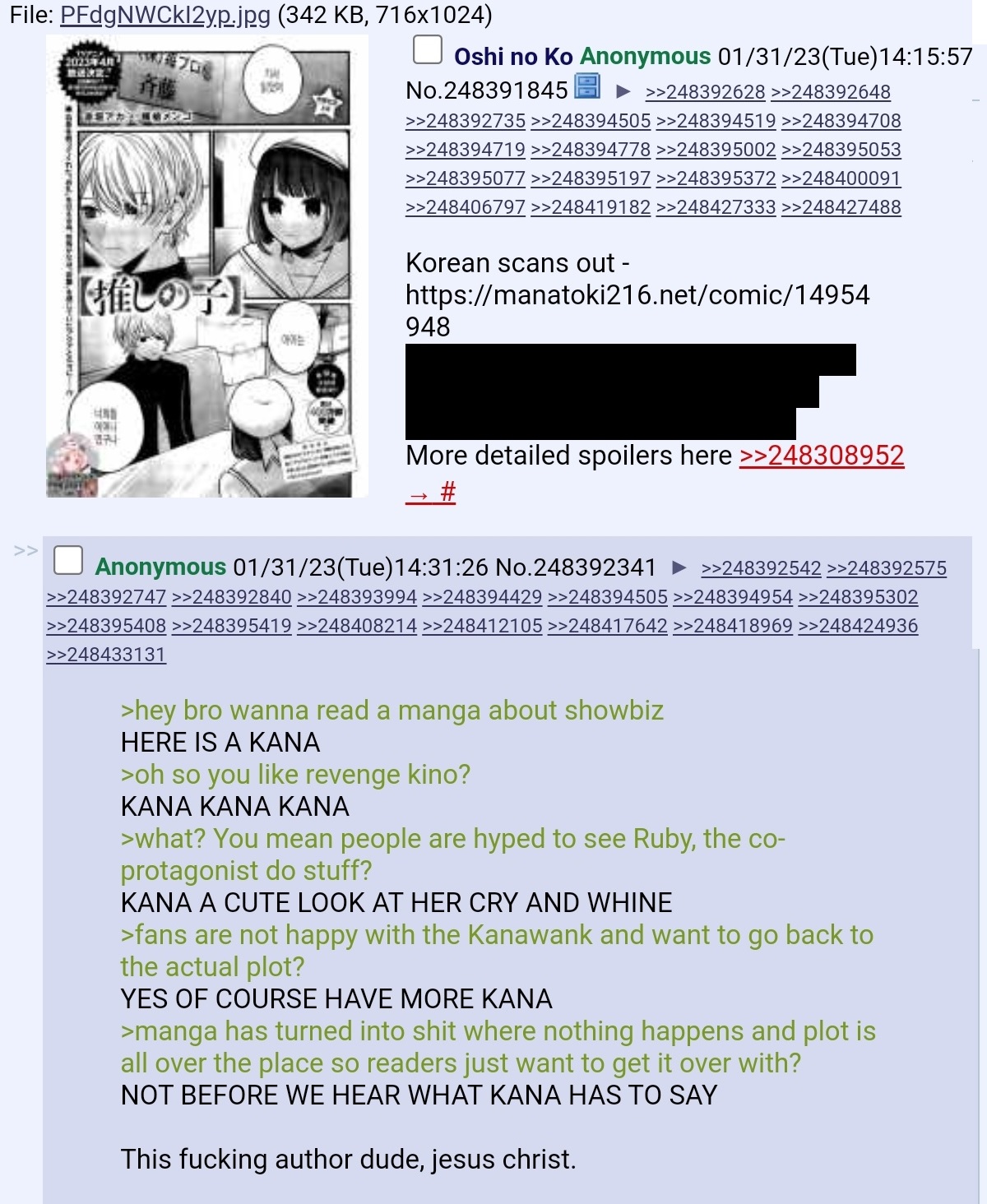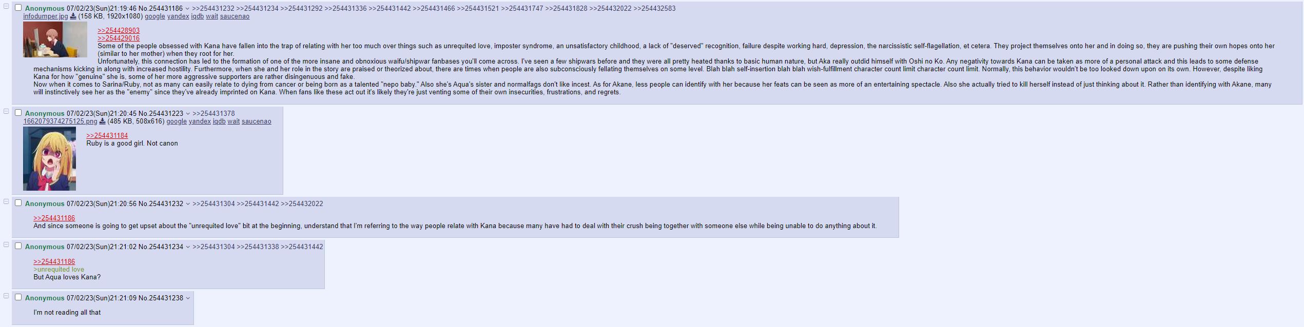 Yes. A 4chan thread, which is what when someone asks who or what oshi no ko is that's the answer. Not it's a 4chan thread but ruby, that's shipper headcanon, of a dead ship at that