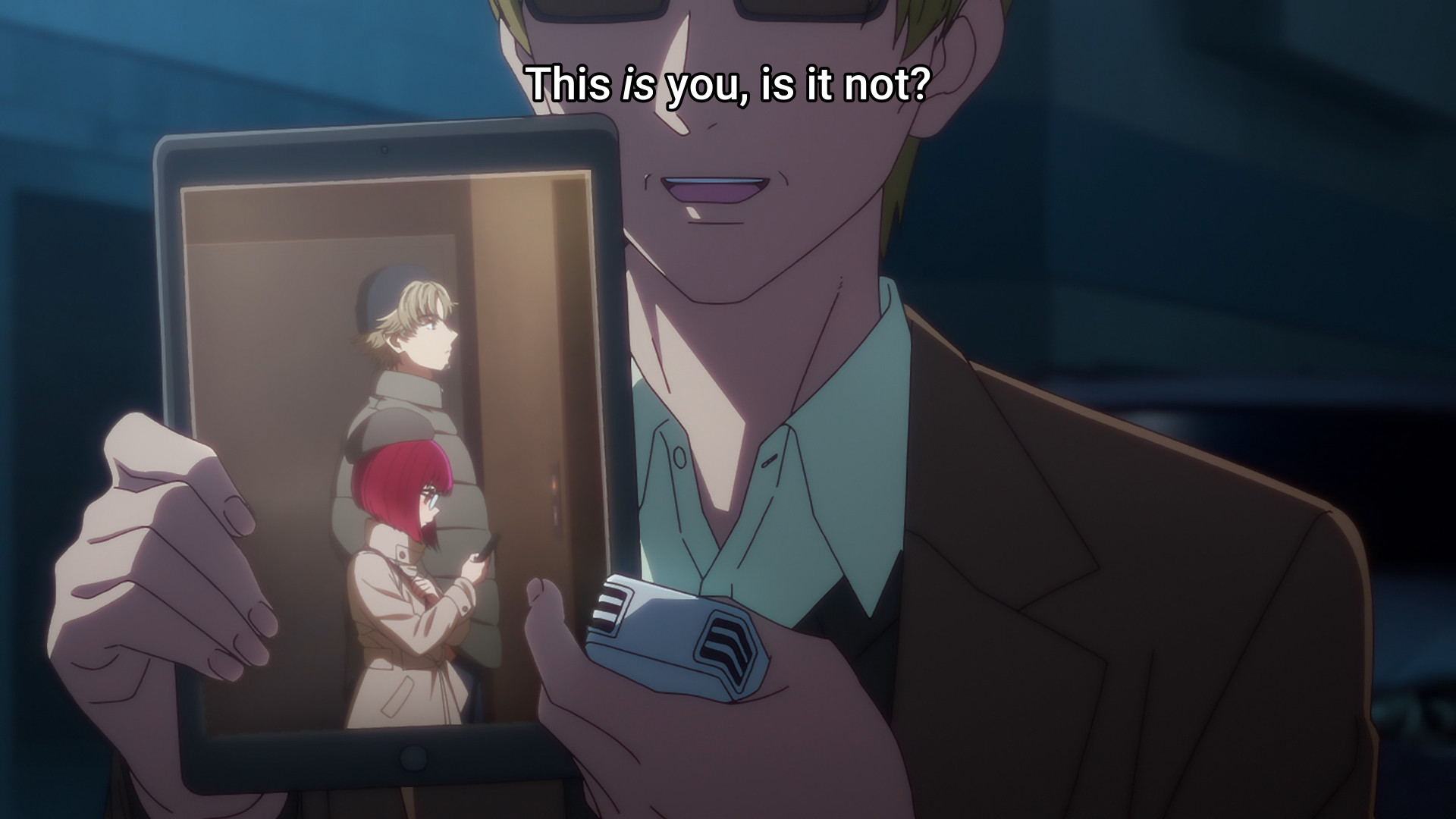 No, Akane takes pictures and goes away. Aqua looks on his phone and goes the opposite direction while behind her.