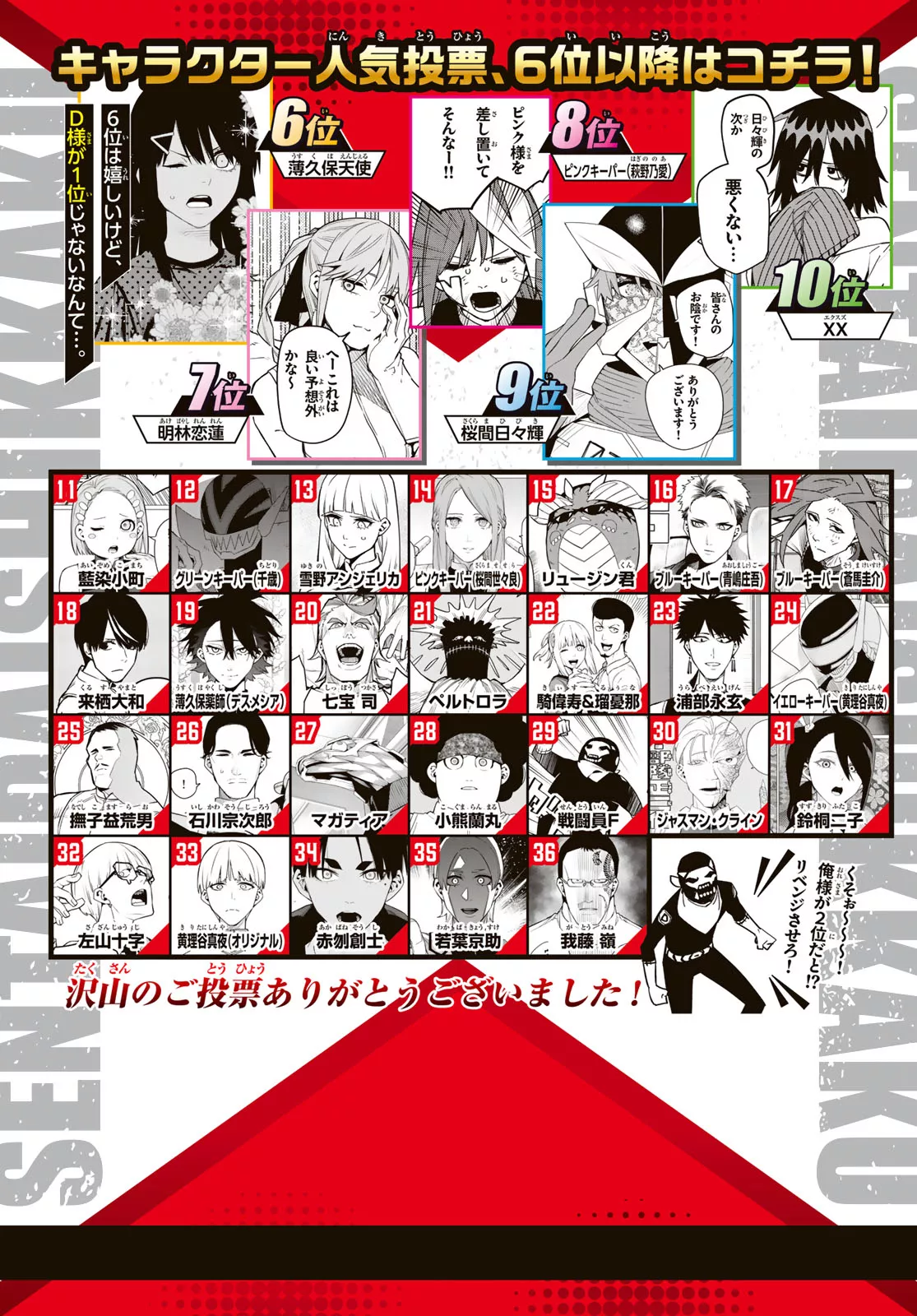 >>286219874Suzukiri only has eyes for her onii-chan. She still respects D a lot and is thankful for helping her getting her sisters back.Honestly it's quite amazing that she got a happy ending retrieving her sisters and finding the good Shinya while Hisui... >>286190751>>286219922I'm with you Chidori not placing in top10 and the fucking panda getting 3rd makes no sense to me.