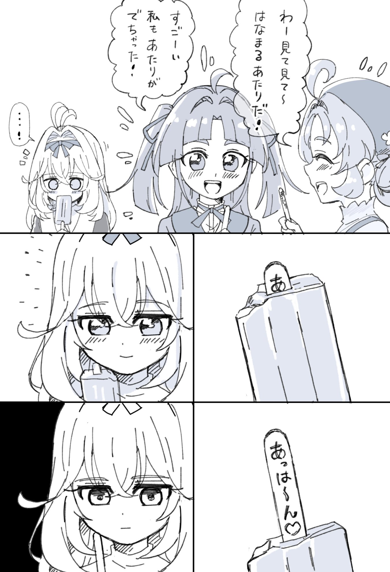 >>286213198good thing they were wearing pants that day or else someone might peek at their pantsuTsubomi wears flower-printsErika's is lacyItsuki is character-print